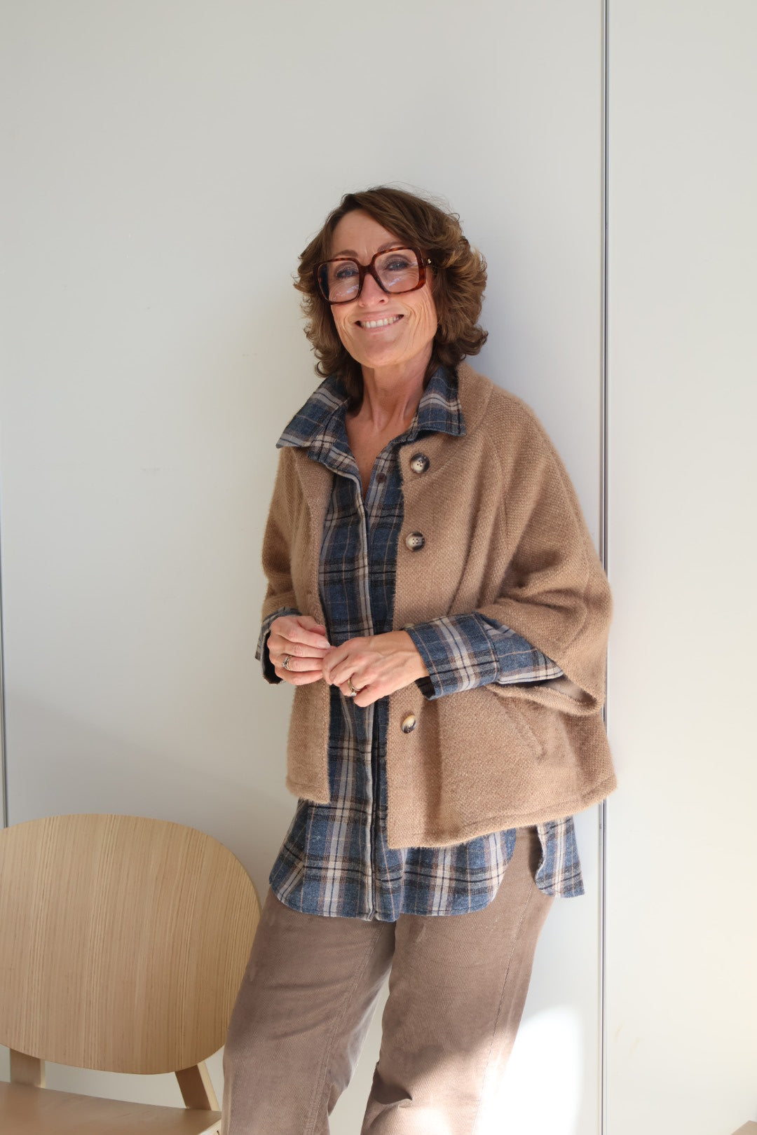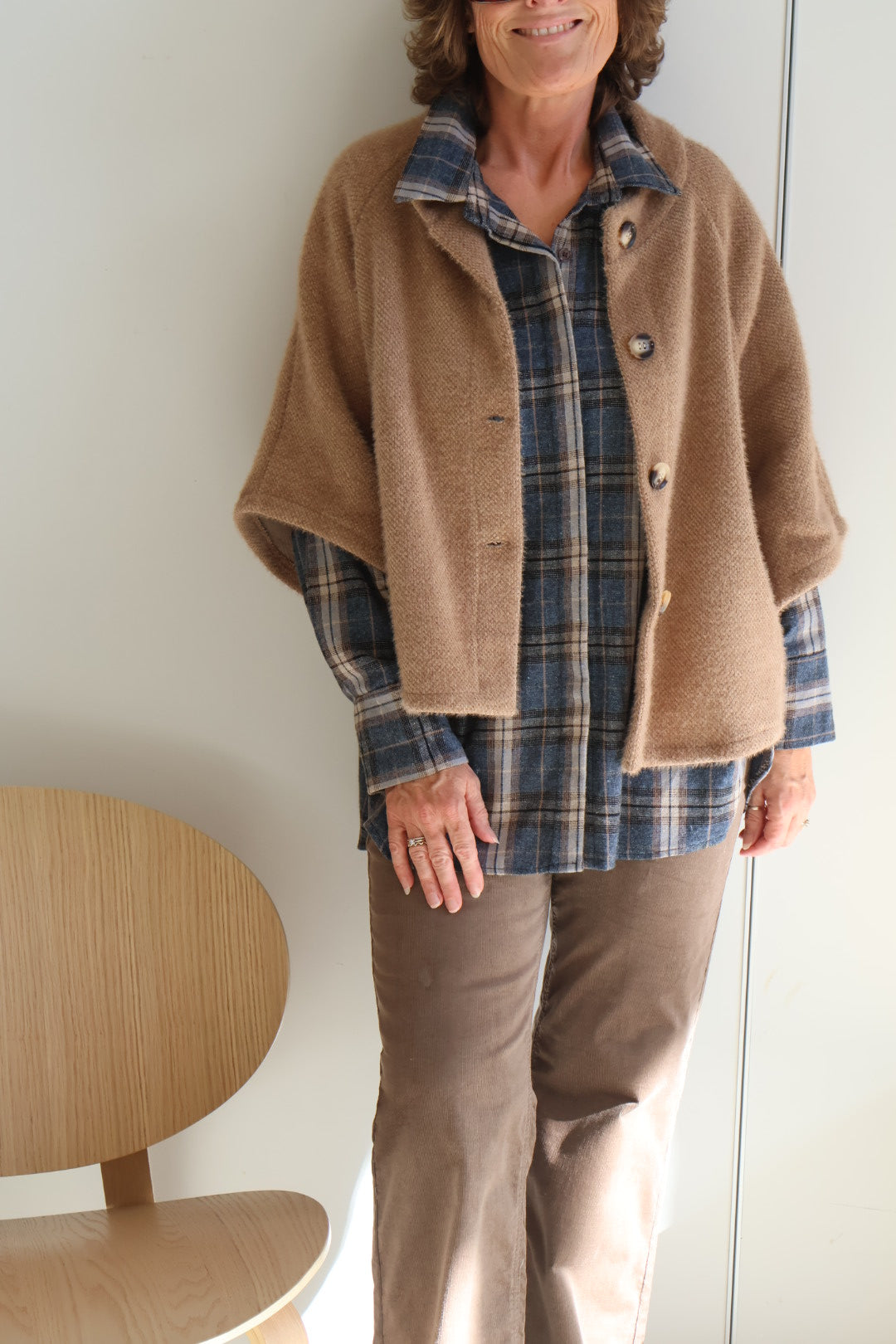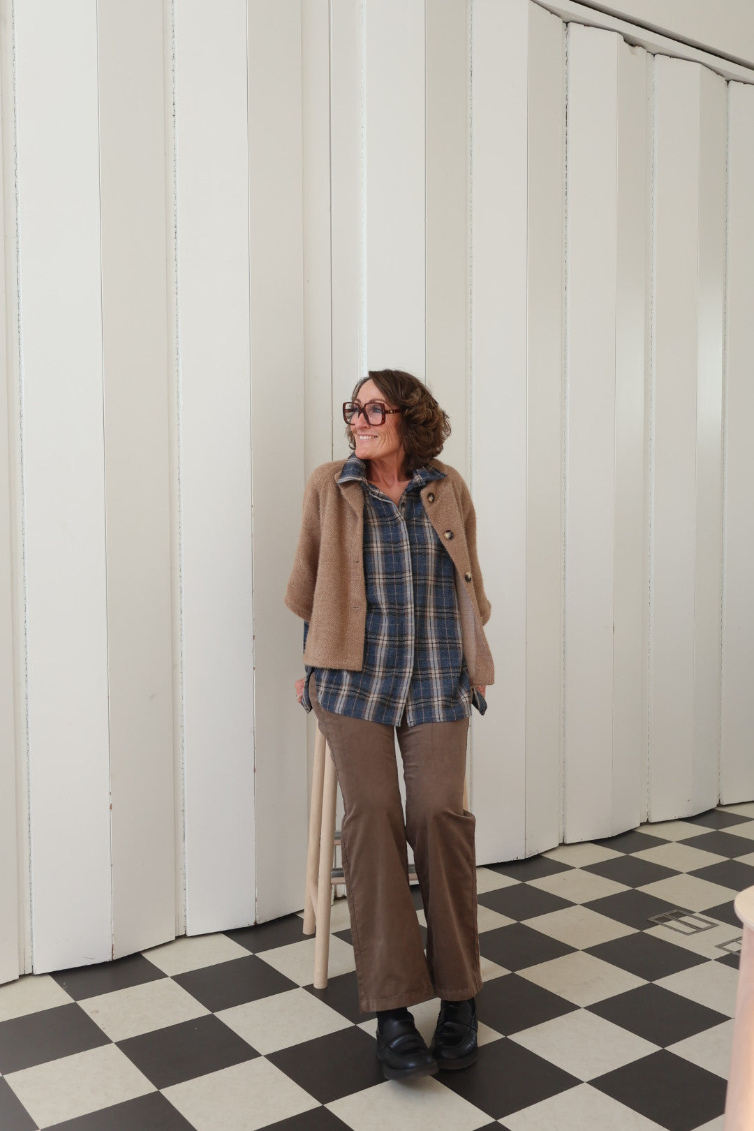 Blå fløjlsbukser og grå strik