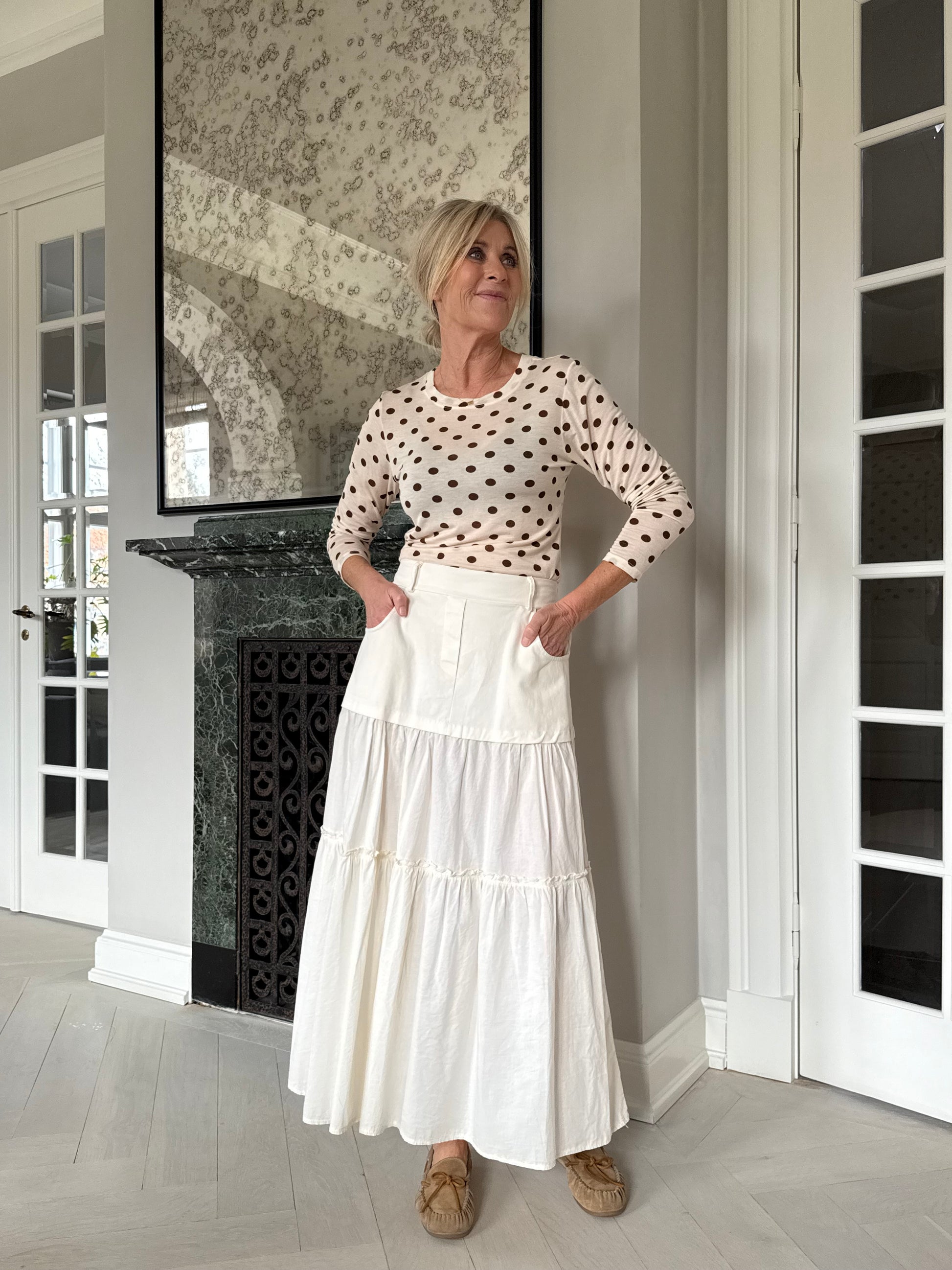 Blondenederdel med hvid skjorte