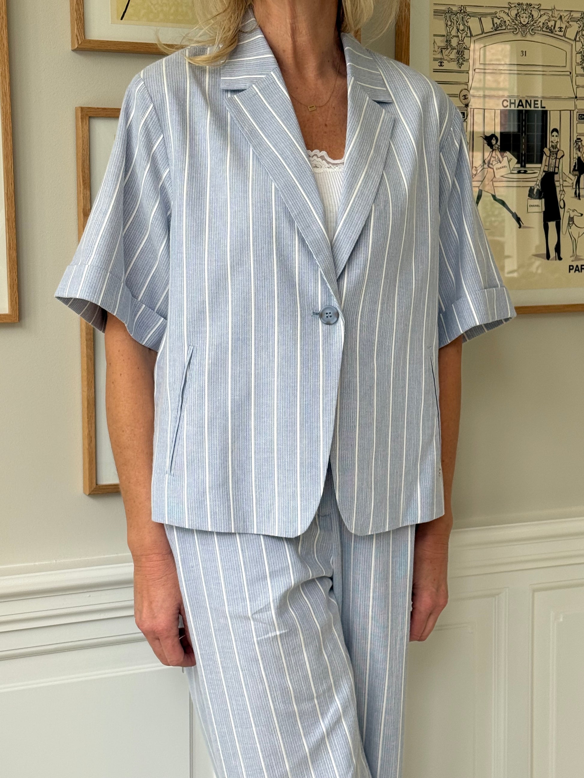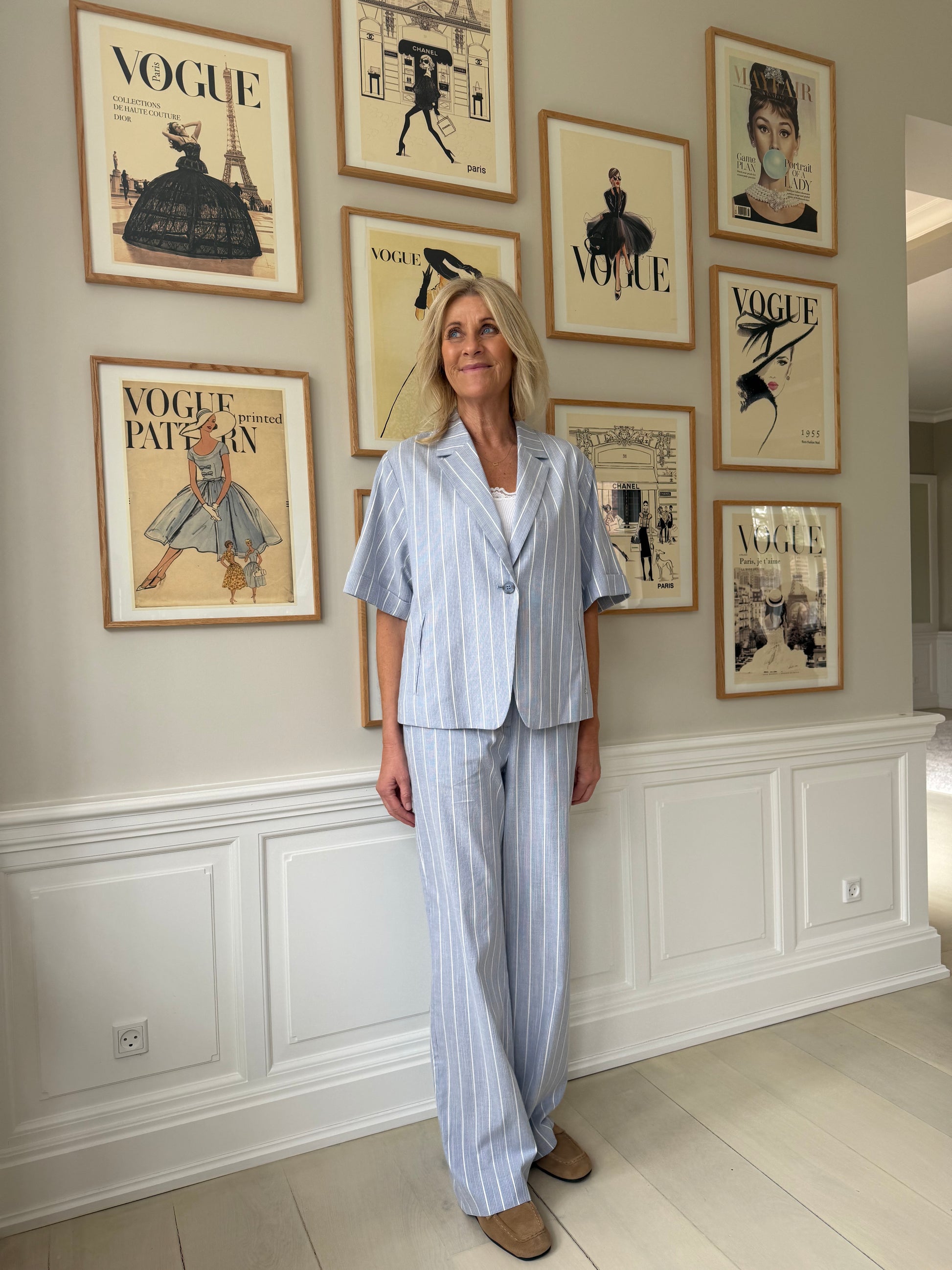 Culottebukser og stribet bluse