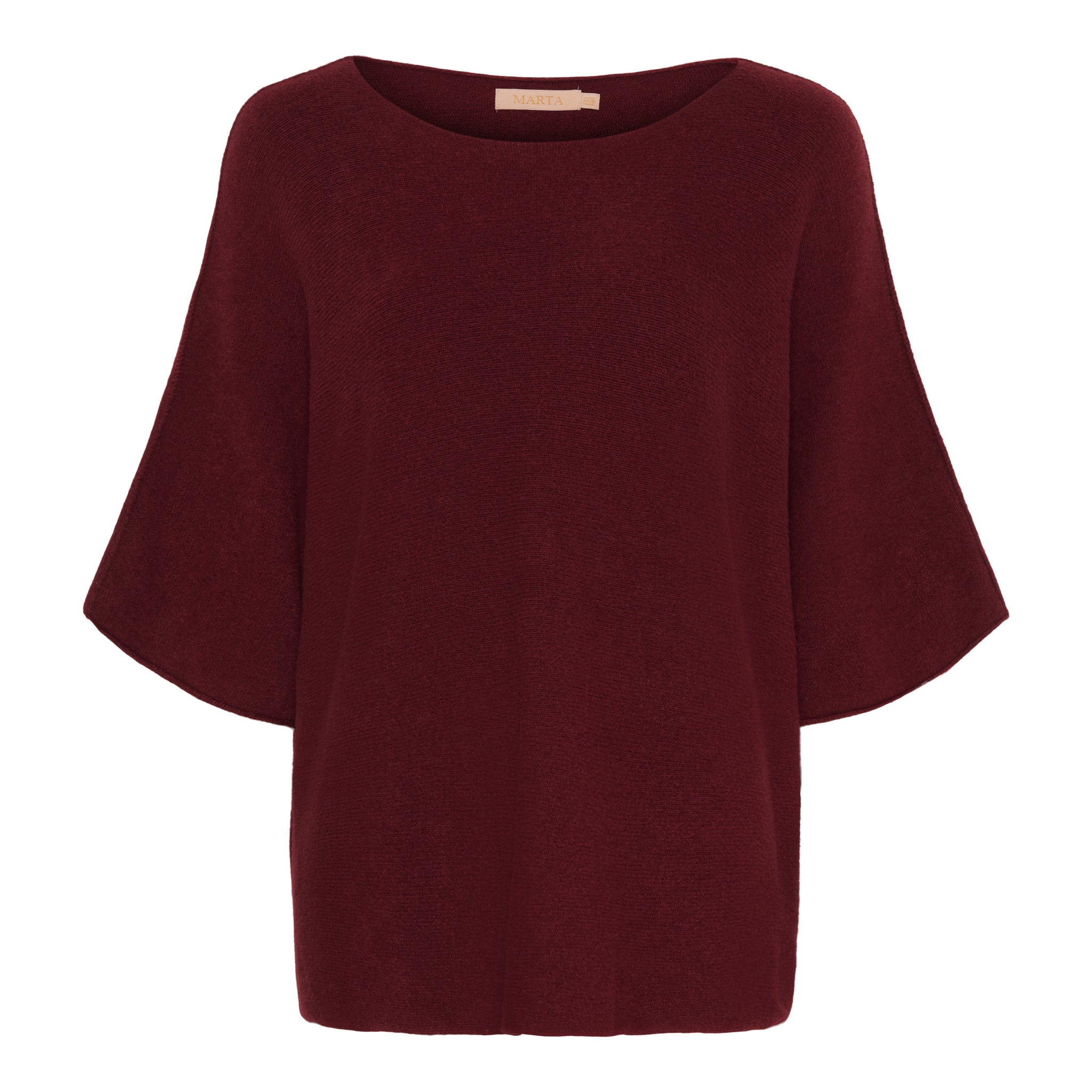 Den bordeaux farvede Sia strik fra Marta du Château er en af vores bedst solgte strikbluser. Farven er lige i skabet og er flot både til sorte og lyse bukser. De 3/4 lange ærmer giver blusen en let fornemmelse.