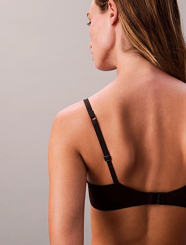 Lækker hverdags bh fra Calvin Klein i sort nylon og elastan. Bh'en har vatterede skåle med bøjle, der giver god støtte og et flot løft. Stropperne er smalle og kan justeres i længden. Bh'en lukkes med klassisk hægte på ryggen.