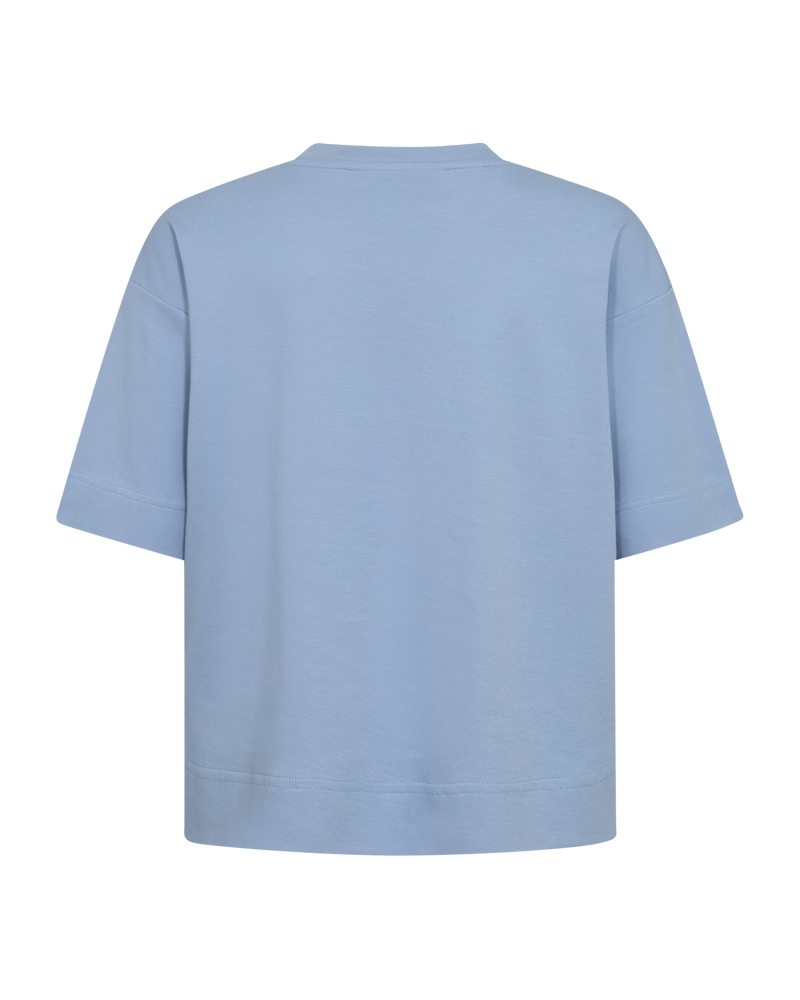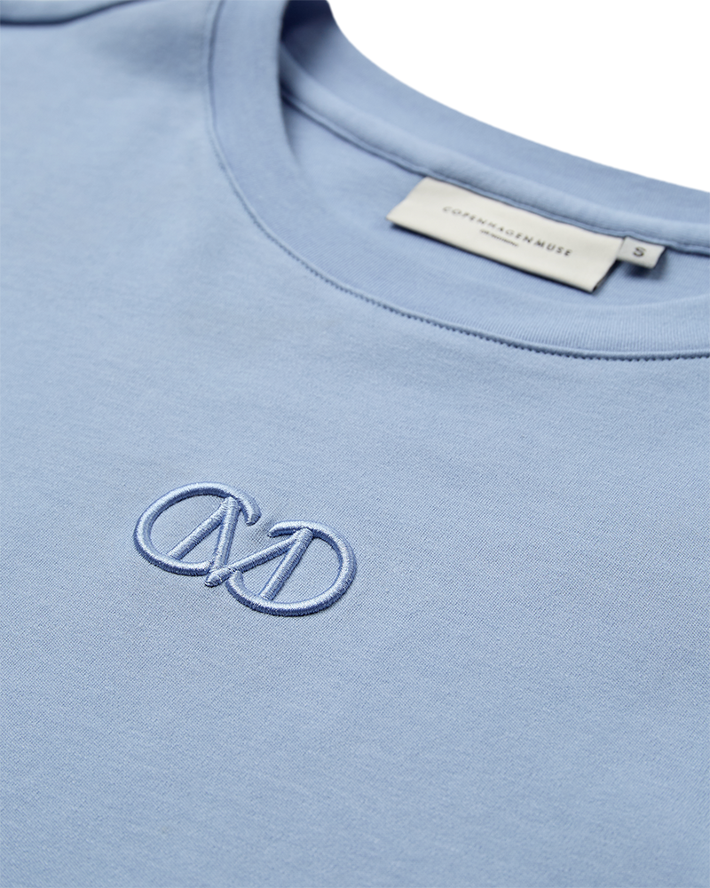 Lækker, blå t-shirt fra Copenhagen Muse i kraftig bomuld. T-shirten har rund halsudskæring og dropped skulder, så du får et boxy, oversize look. Style den blå t-shirt til de off white Tailor bukser for et friskt forårslook. Du kan også sagtens sætte den blå t-shirt til dine jeans eller en lækker nederdel.