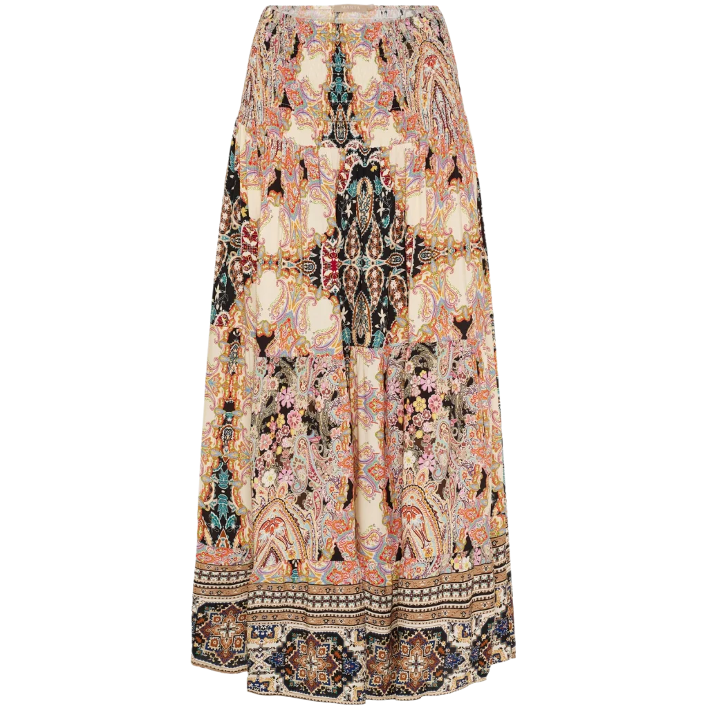 Skøn smock nederdel fra Marta du Château. Nederdelen har masser af vidde i skørtet og sidder flot til i livet. Den gode smock gør nederdelen behagelig at have på og giver en flot pasform. Style med en sort t-shirt eller top og fremhæv tonerne i nederdelens print.
