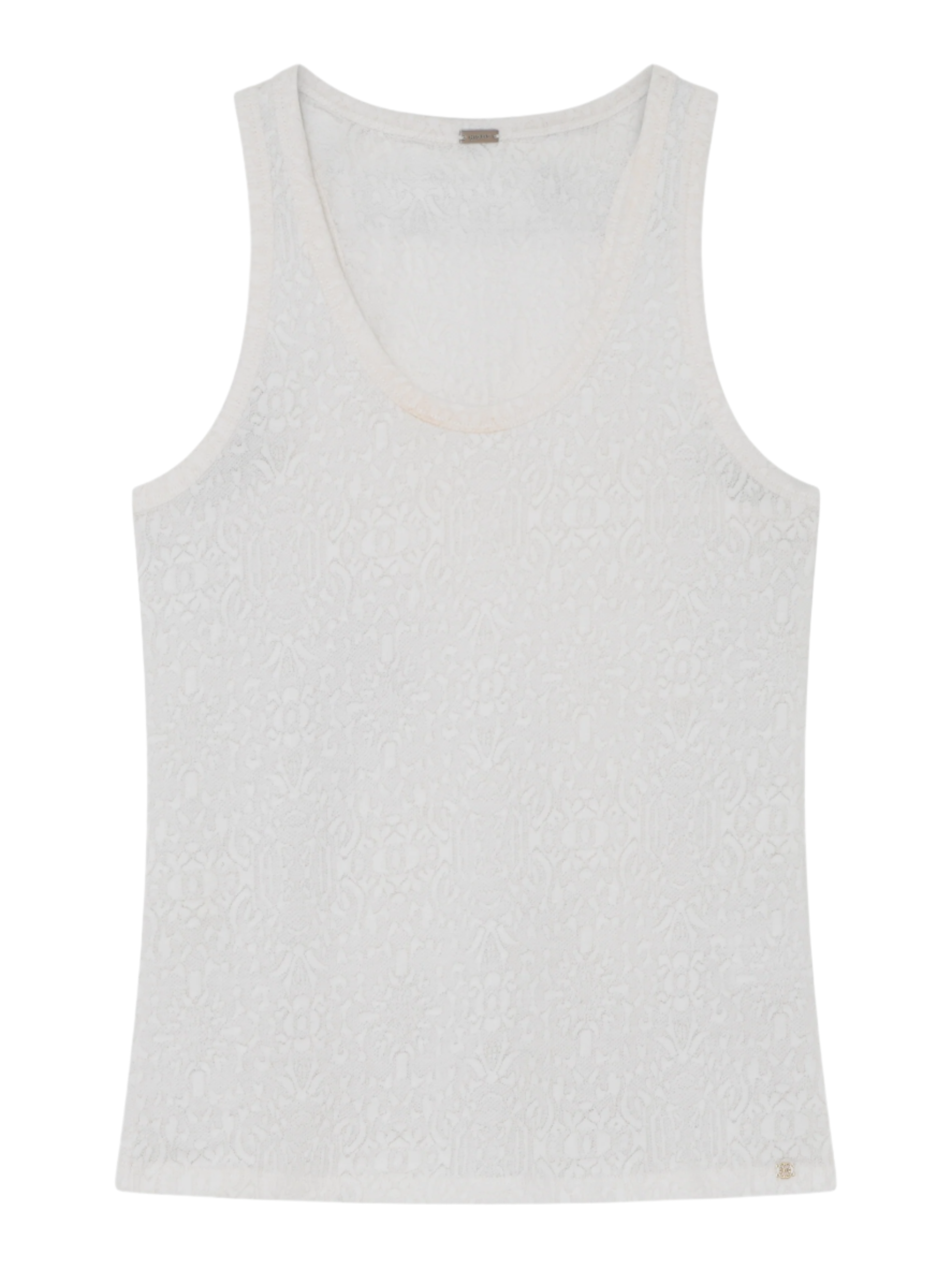 Fine Fanny er en blød tanktop fra Gustav i jersey blonde. Toppen er off white og har en dyb halsudskæring. Den bløde bomuldsstræk gør toppen lækker og behagelig at have på. Når du vælger en blonde top til dit outfit, er det en nem måde at gøre dit look mere feminint. Men toppen er også super fin til et par jeans med en strik over for et lækkert sæt til hverdag. Du finder også de mere klassiske Cami rib toppe fra Gustav.