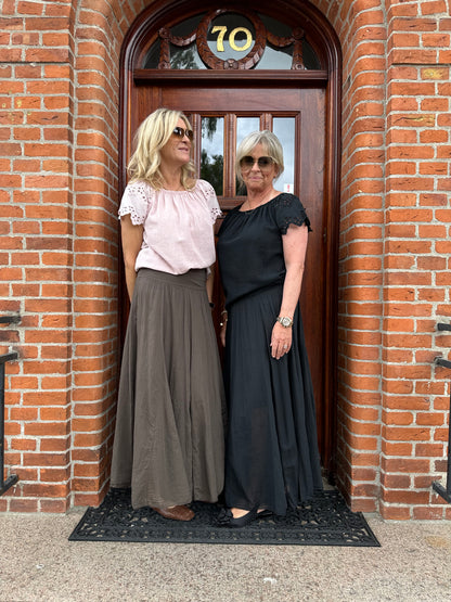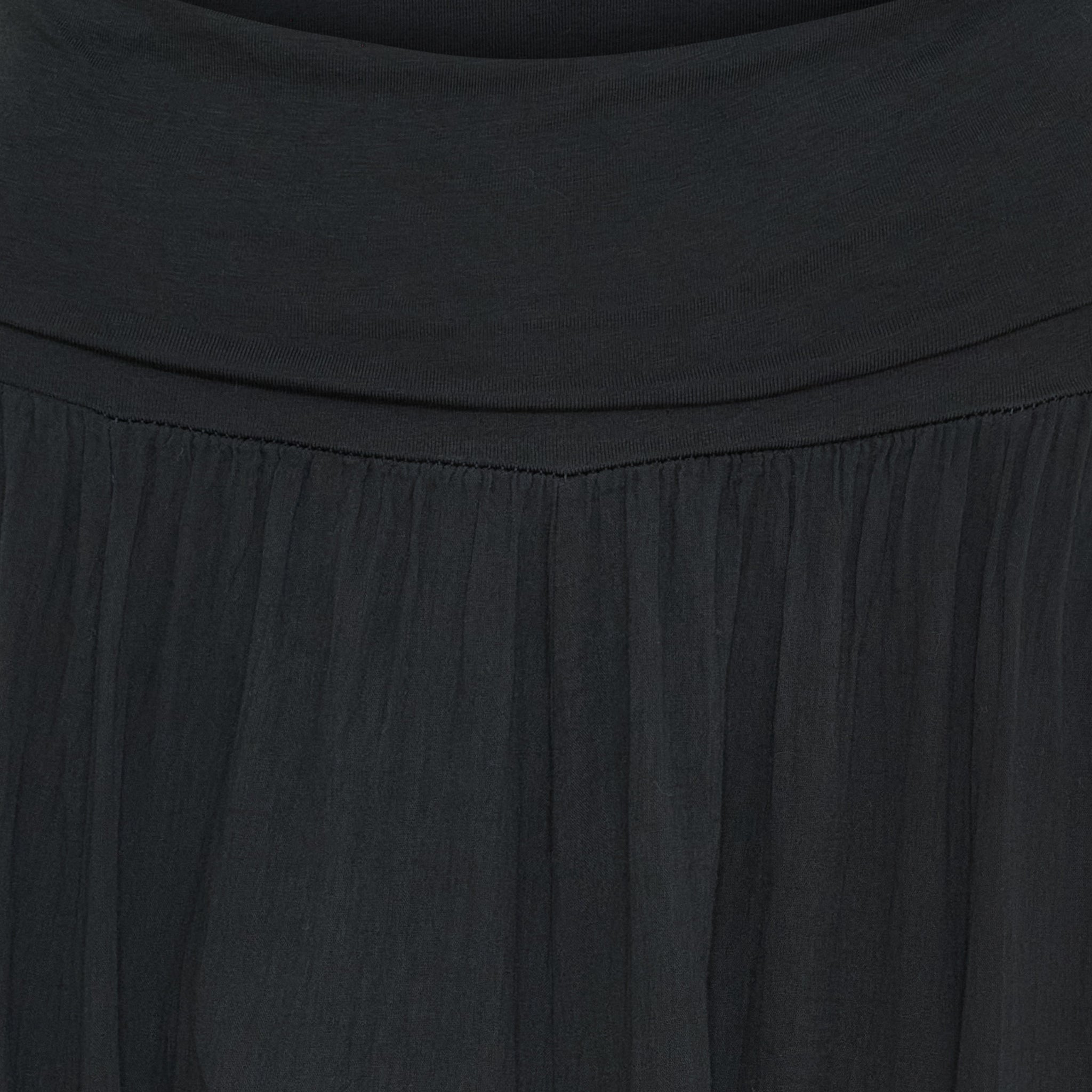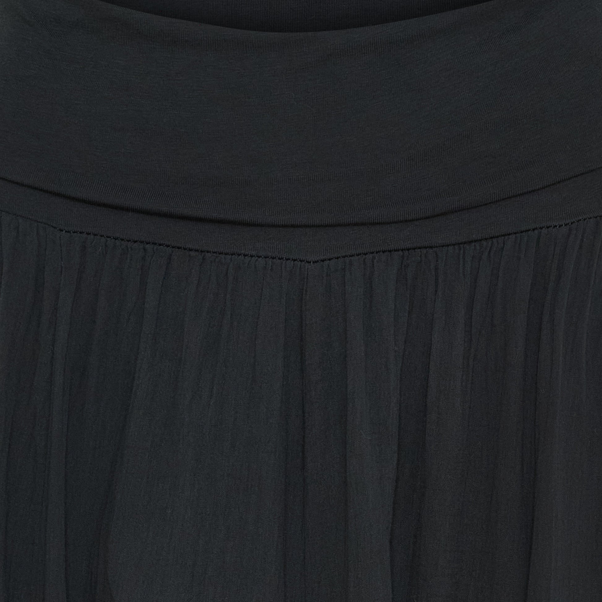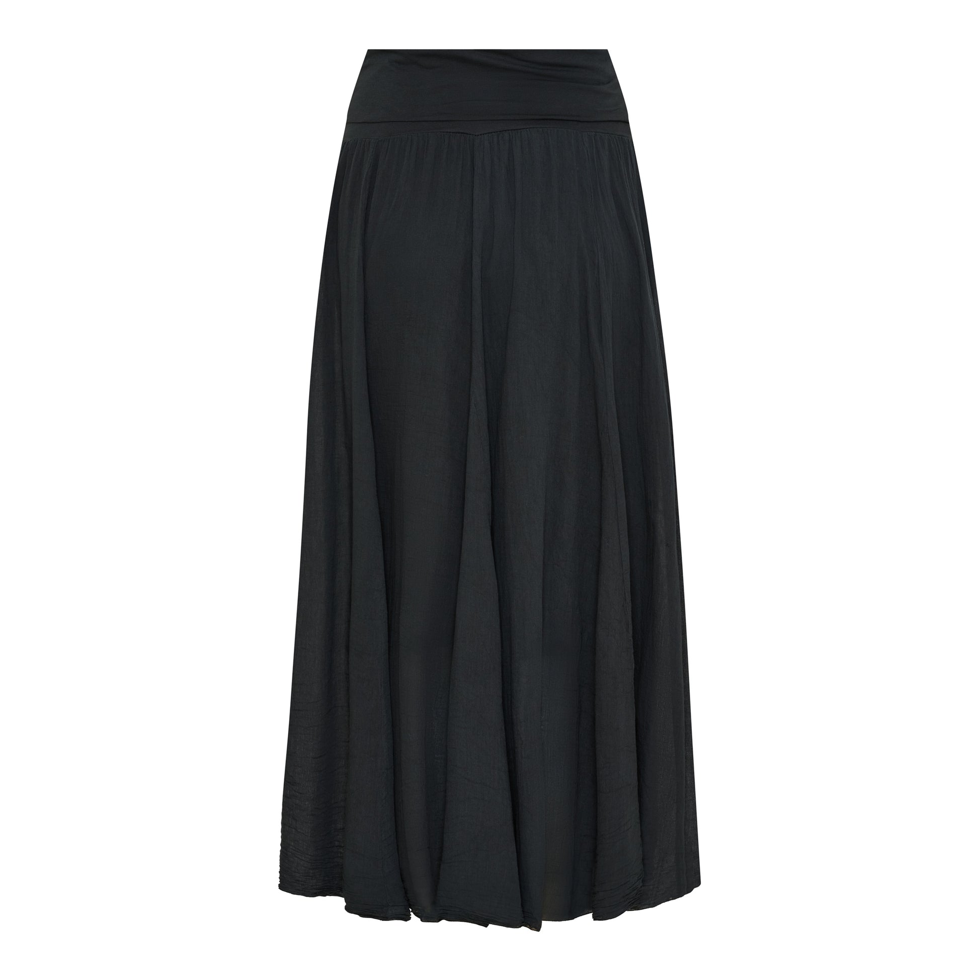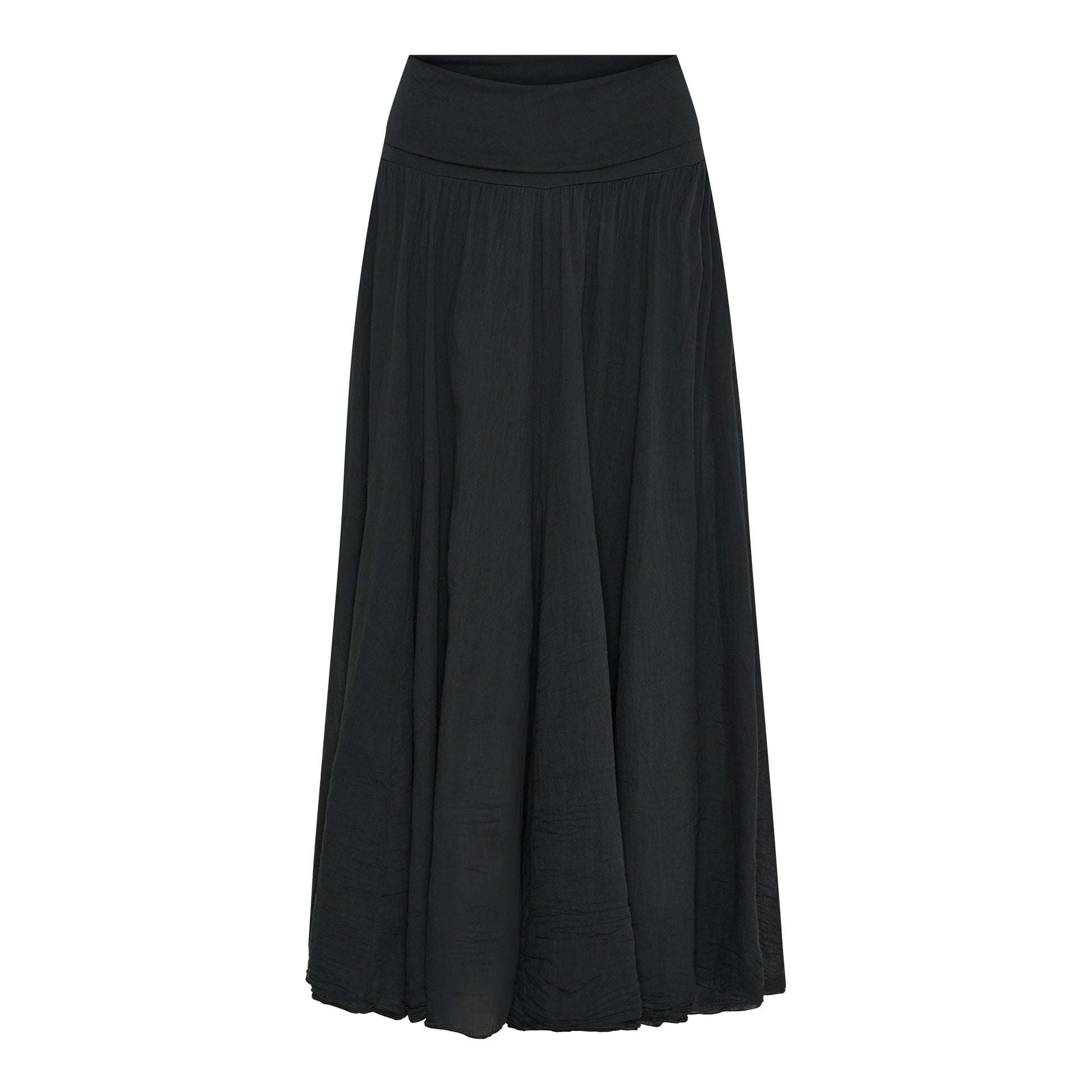 Sort nederdel fra Marta du Château med bredt elastikstykke i linningen, der kan foldes ned. Style med sød bluse - enten tone i tone eller vælg en kontrastfarve og sæt fokus på dit outfit.MålS/MWaist: 70 cm.Length: 95 cm.L/XL:Waist: 75 cm.Length: 98 cm.