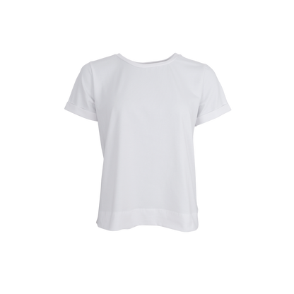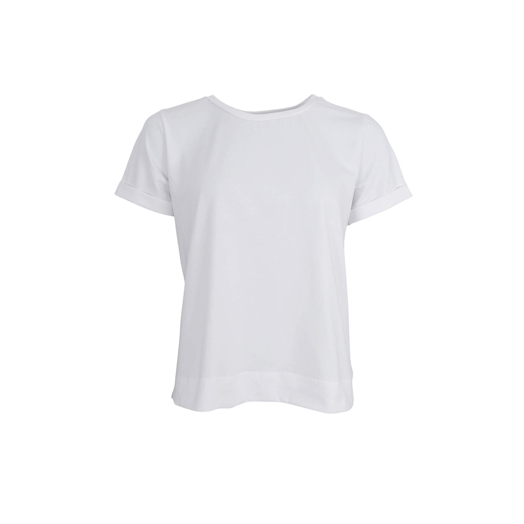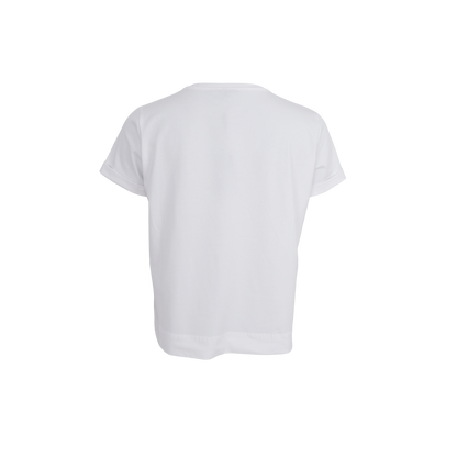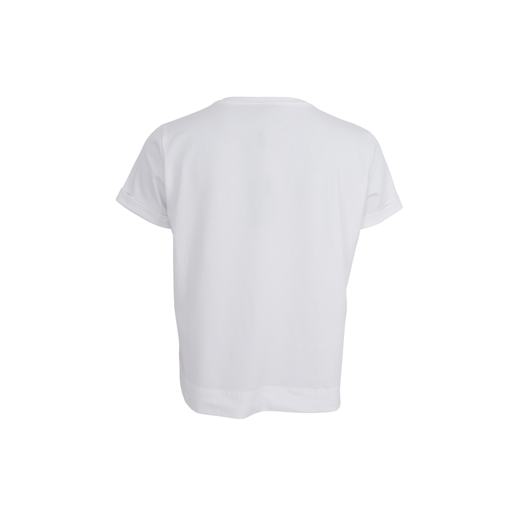 En hvid t-shirt er en must i enhver garderobe. Den er bare god til det hele. Om sommeren bruger du den med shorts eller nederdel, men den er også god til jeans og lange bukser på en køligere sommerdag. Den hvide t-shirt har rund halsudskæring og ærmer med opsmøg.Mål S/M:Chest width: 50 cm.Length: 60 cm.