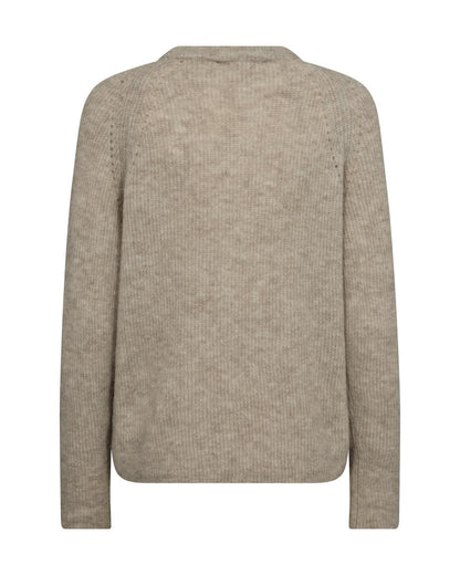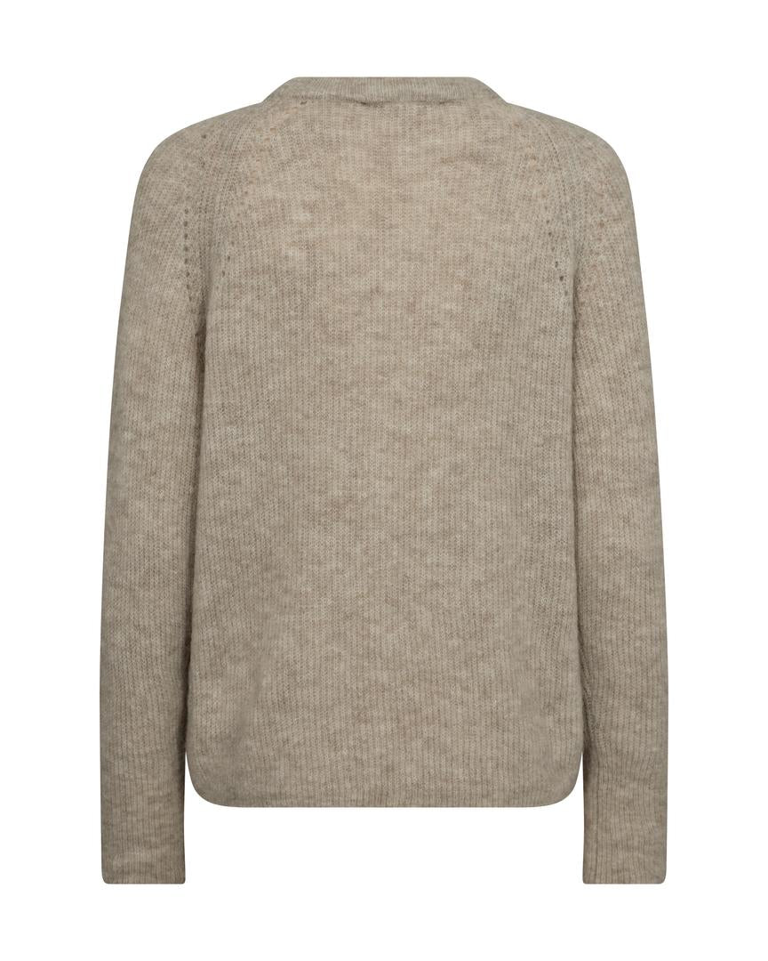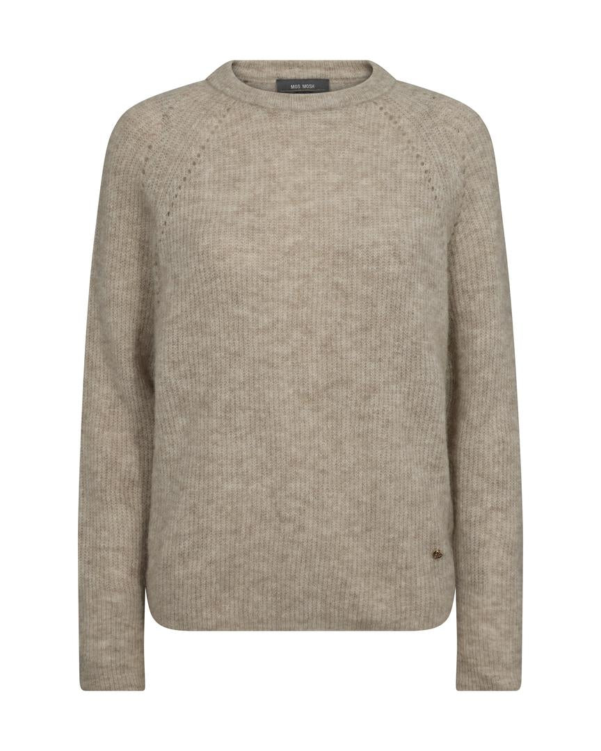 Skøn strikbluse fra Mos Mosh i en meleret sandfarve. Strikblusen har lange ærmer med flot hulmønster langs raglansnittet. Der er både alpaca og uld i materialet, så strikken er dejlig varm. Style til brune bukser, når efteråret melder sin ankomst.