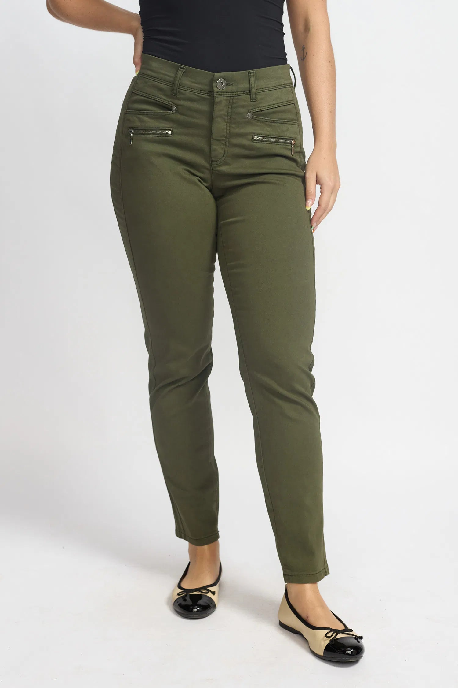 Den gode Rany buks fra 2-Biz er kommet i en flot, mørkegrøn farve. Rany buksen er højtaljet med smalle ben. Der er godt med stræk i materialet, så bukserne er behagelige og lækre at have på. De mørkegrønne bukser er flotte med en hvid eller off white bluse her i løbet af sommeren. Hvis du gerne vil bruge bukserne til efteråret, kan du sætte en sort strik til, eller måske en grøn bluse, hvis det skal være mere tone-i-tone.