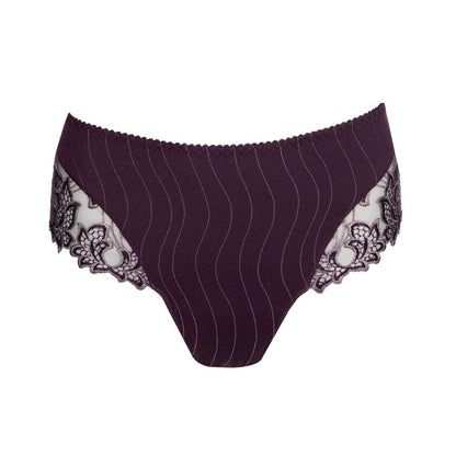 Den populære Deauville g-streng fra PrimaDonna er kommet i efterårets smukke bordeaux farve. Trussen er glat foran med de klassiske Deauville bølger. På siderne ser du den fine blonde, der fortsætter om bagpå, så din bagdel ikke er helt bar. Den fine blonde er lavet, så den ikke laver synlige kanter gennem dit tætsiddende tøj. Så er der ikke andet for end at sætte den smukke Deauville bh til, og så har du efterårets lækreste PrimaDonna sæt.