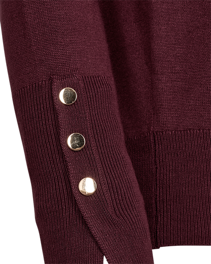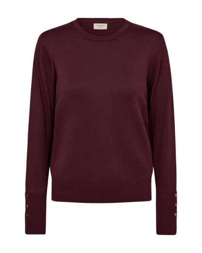 Efterårets mest populære farve kommer nu som en smuk strikbluse fra Freequent. Katie strikken er en af vores mest populære strikbluser. Den har en enkel og flot pasform og så de fineste, gyldne knapper på de høje manchetter. Det gør blusen virkelig fin og feminin.