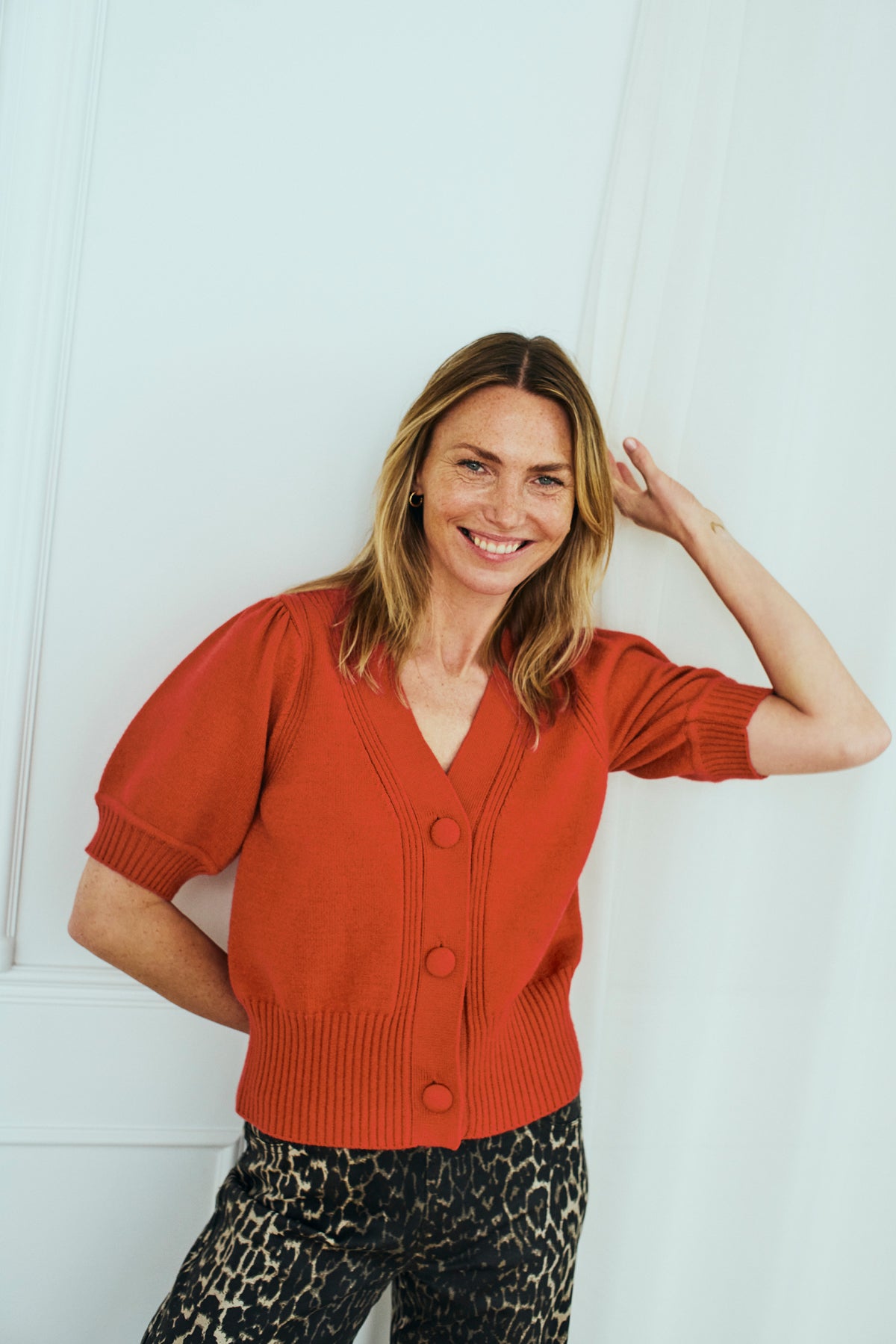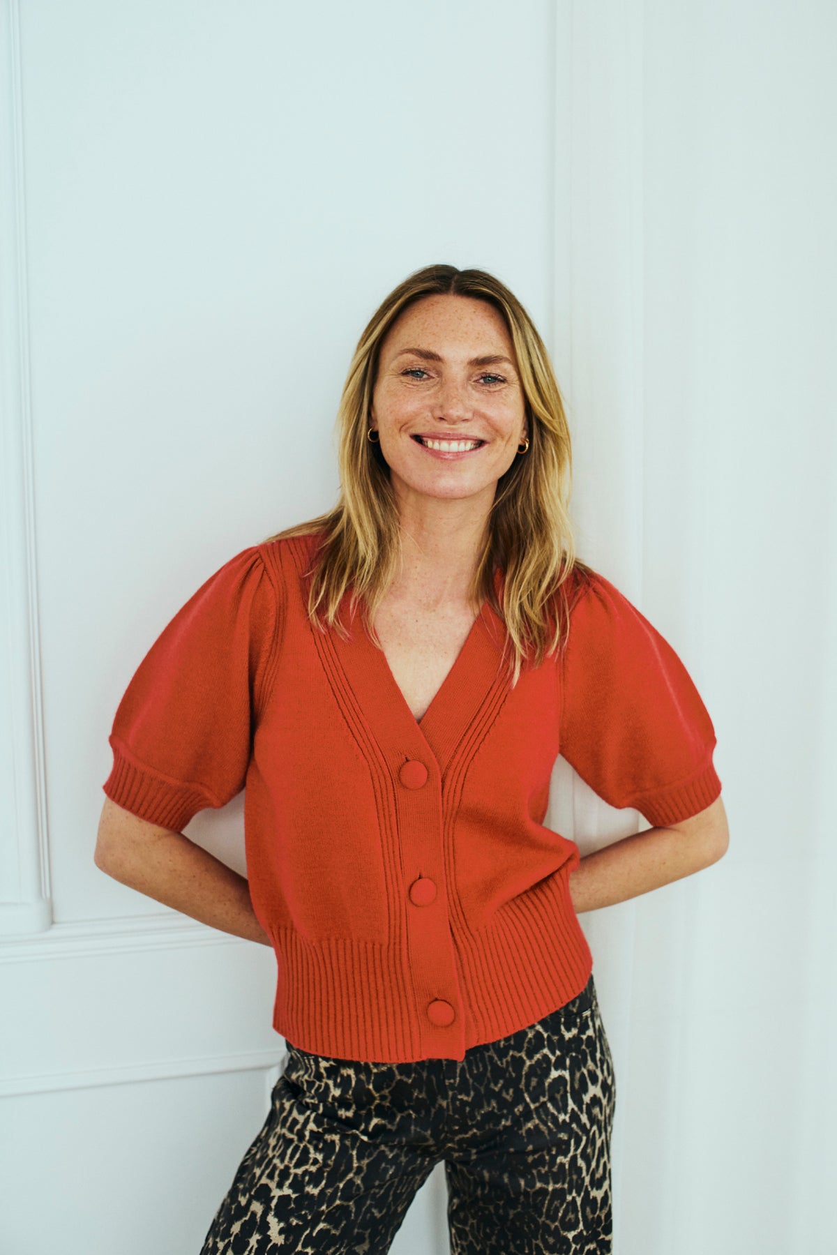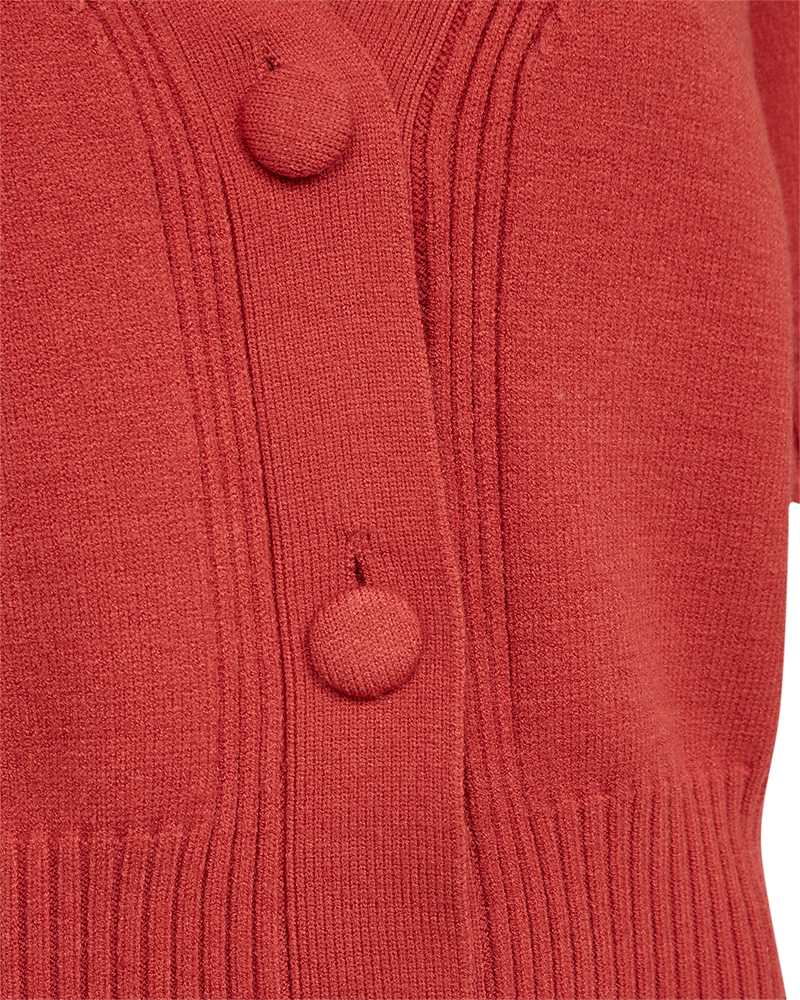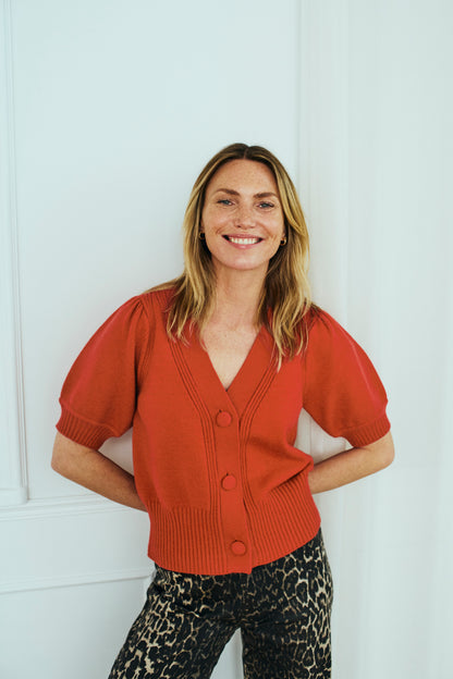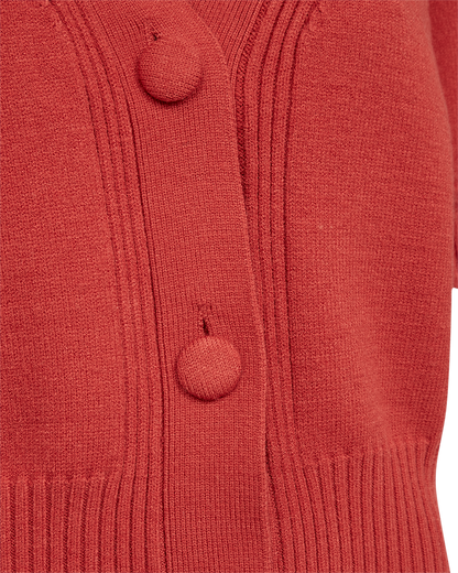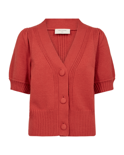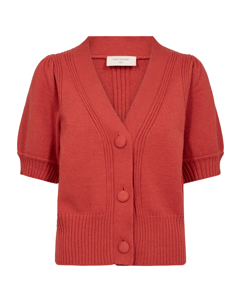 Flot, rød cardigan fra Freequent. De store knapper og de fine pufærmer giver cardiganen et super cool look. Super sød at style til et par jeans.