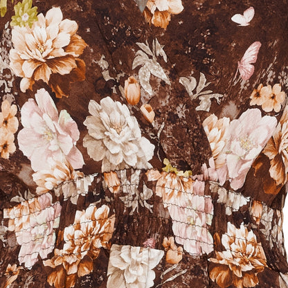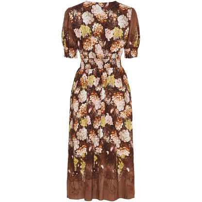 Smuk efterårskjole fra Marta du Château i mørkebrun viskose. Kjolen har fine smock detaljer og er virkelig feminin i sit snit. Måske har du allerede prøvet den i foråret?Mål:S/MChest: 104 cm.Length: 117 cm.L/XL:Chest: 107 cm.Length: 120 cm.
