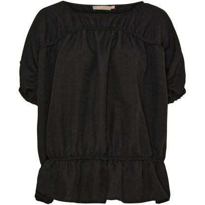 Super fed bluse fra Marta du Château i sort polyester. Den rynkede effekt i top og bund giver et let ballon look, som er virkelig fint. Det er flot at style til et par skinny jeans som Amaya, så du har fylden i toppen og så et slim look i bunden.
