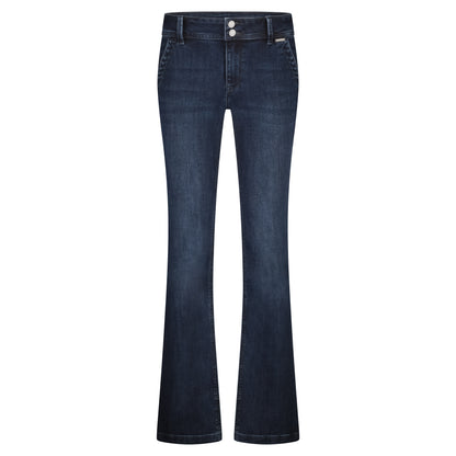 Fede jeans fra Red Button i en mørk stone wash. Bukserne har et let flare og en virkelig god pasform. De mørke jeans er perfekt til efteråret med en cool skjorte eller en lækker strik.OBS - flere vælger at gå en størrelse ned, da buksen giver sig i brug.