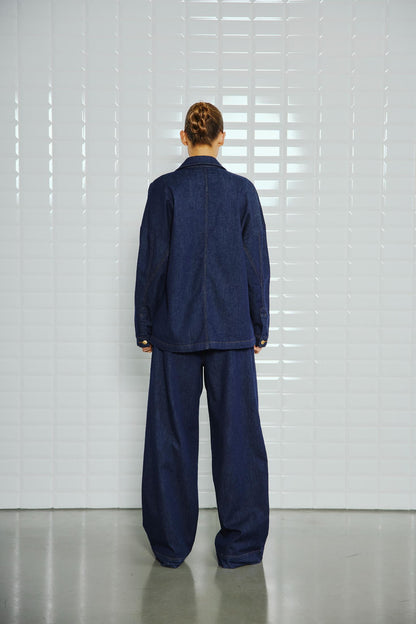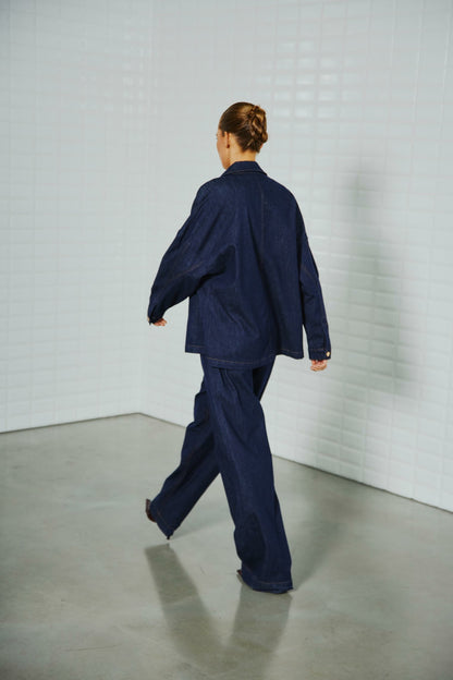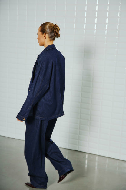 Super fede jeans fra WithBlack med god vidde i benene og cool læg foran. Bukserne har høj talje og skrålommer. Du kan vælge at style med den matchende Odette skjorte, hvis du godt kunne tænke dig et helt denim sæt.