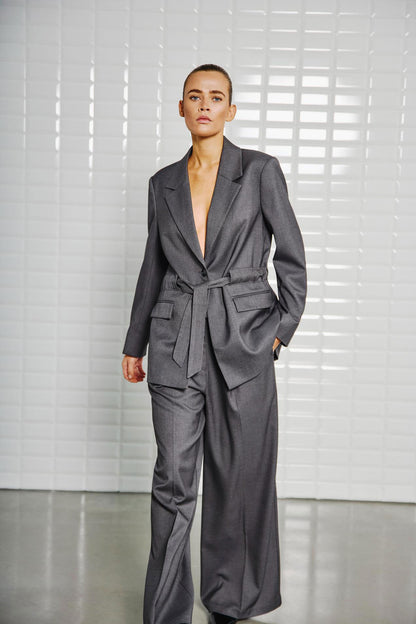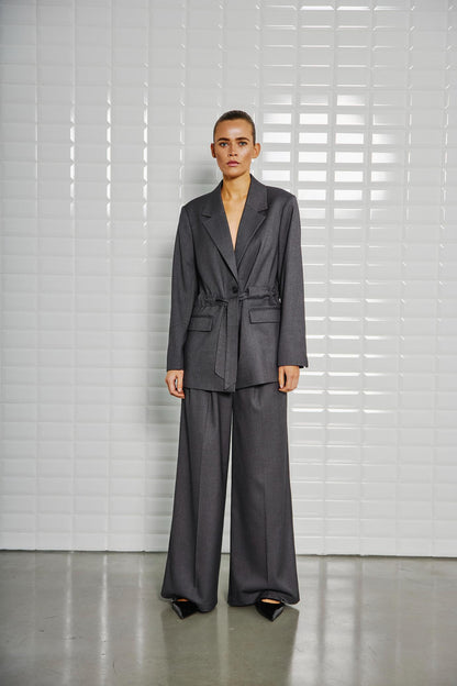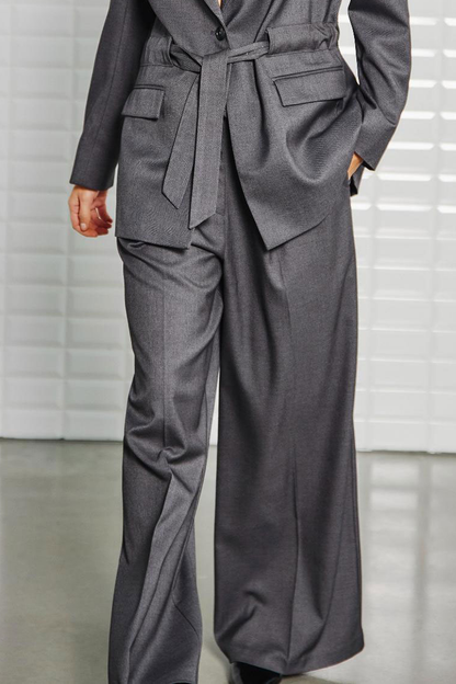 Fede bukser i herrestil fra WithBlack. De mørkegrå bukser har flotte læg og smalt bindebånd. Der er ekstra meget vidde i benene, så du får det der lækre oversize look. Style med den matchende Magnolia jakke, hvis du gerne vil have et helt sæt.