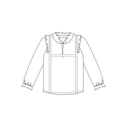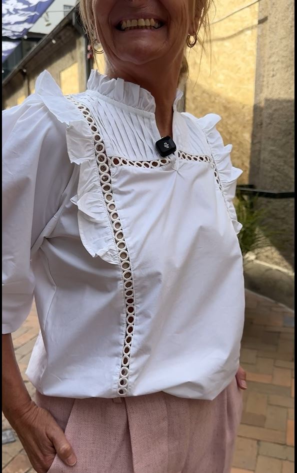 Sød bluse fra Kopenhaken i hvid bomuldspoplin. blusen har fine flæsedetaljer og et feminint snit. Der kommer et rigtigt billedet på hurtigst muligt.