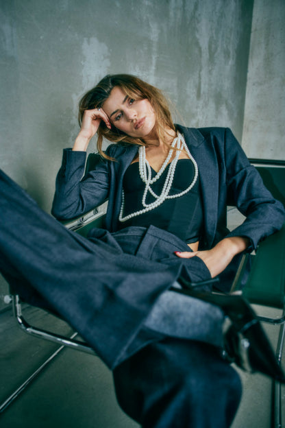 Den gode Tailor buks fra Copenhagen Muse er kommet i en lækker, mørkegrå farve til efteråret. Buksen har de gode læg vi kender fra Tailor og en fantastisk pasform. Style med den matchende blazer, så du får et lækkert suit til efteråret. Den grå farve er flot at style med toppe og bluser i efterårets farver - det går flot sammen.