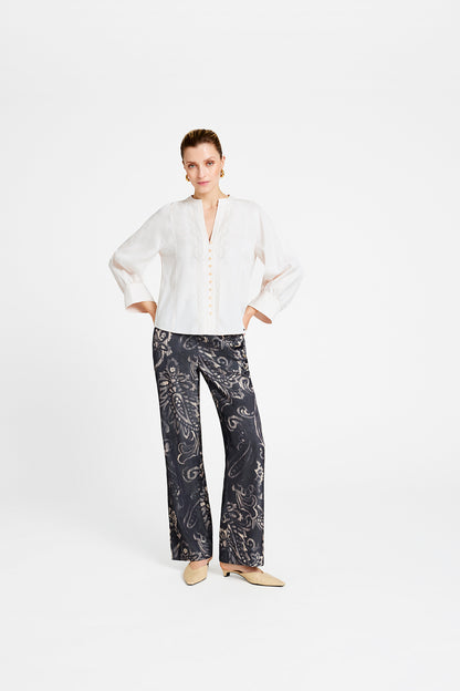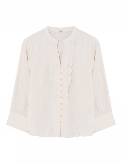 Feminin bluse fra Gustav i off white lyocell. Skjorten har de sødeste detaljer ned langs knaplukningen, som giver en virkelig fin vintage vibe. Ærmer og manchetter har en god vidde. Style til brune bukser eller til den fede ruskindsnederdel.