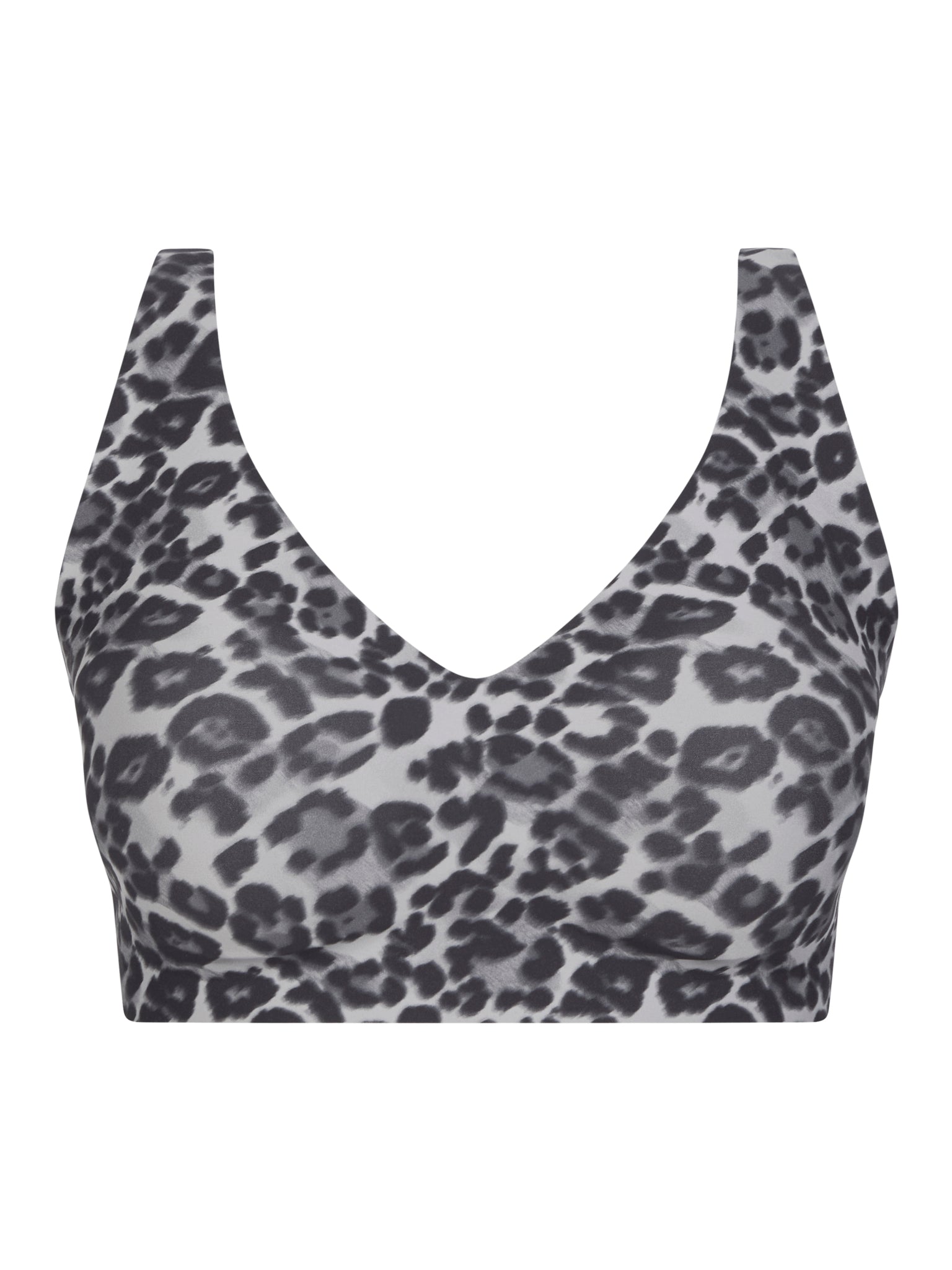 Blød og lækker bh top fra Chantelle Soft Stretch i gråt leopardmønster. Toppens skåle former sig efter din barm, så den er virkelig god at have på. Stropperne er brede og toppen lukkes på ryggen med klassisk bh hægter.