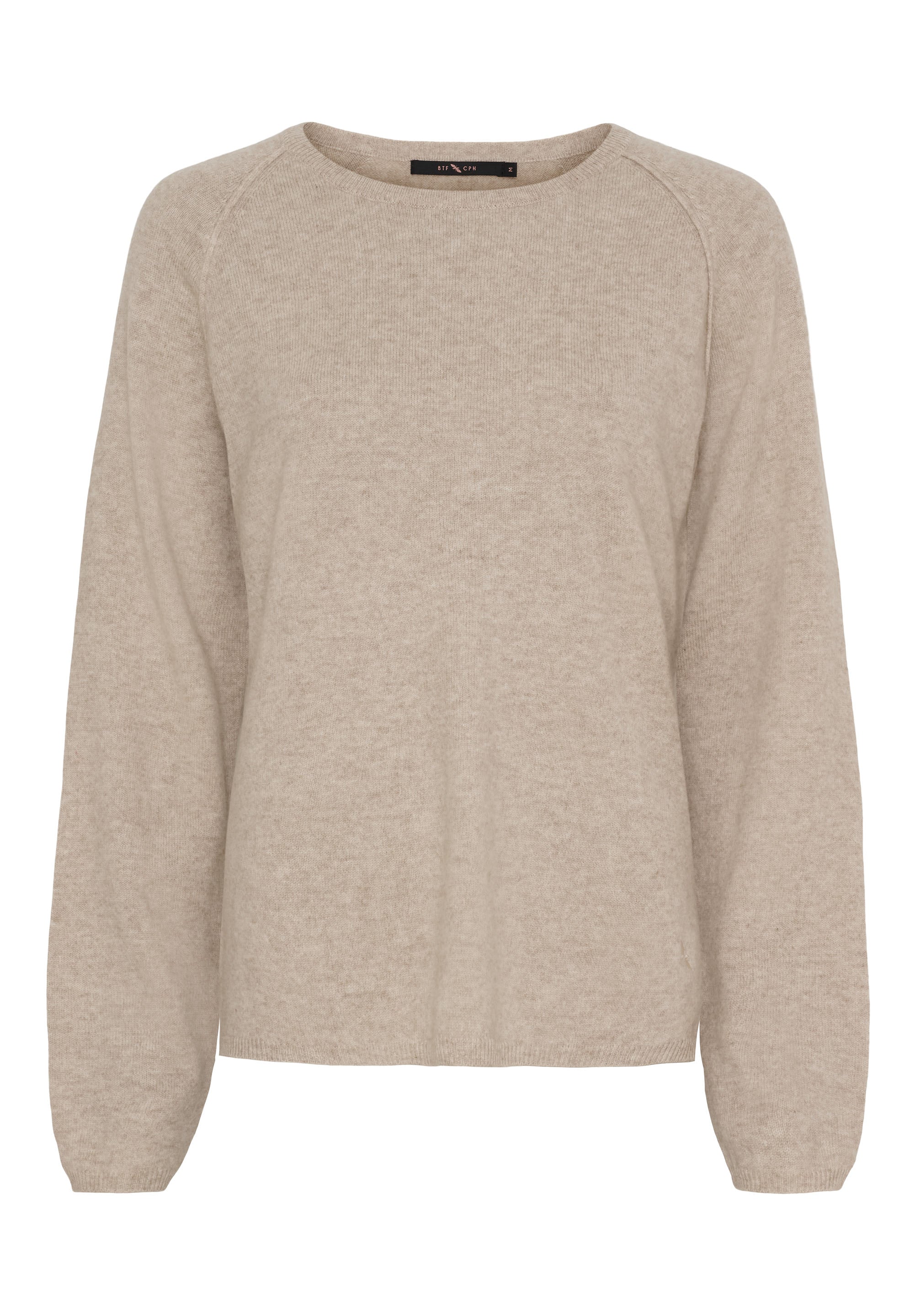 Flot cashmere bluse fra BTF CPH i en smuk sandfarve. Blusen er lavet i den blødeste cashmere-merino blanding, så den er virkelig lækker at have på. Style til mørkeblå eller brune bukser her til efteråret. Du kan også gøre dit outfit mere enkelt med jeans.