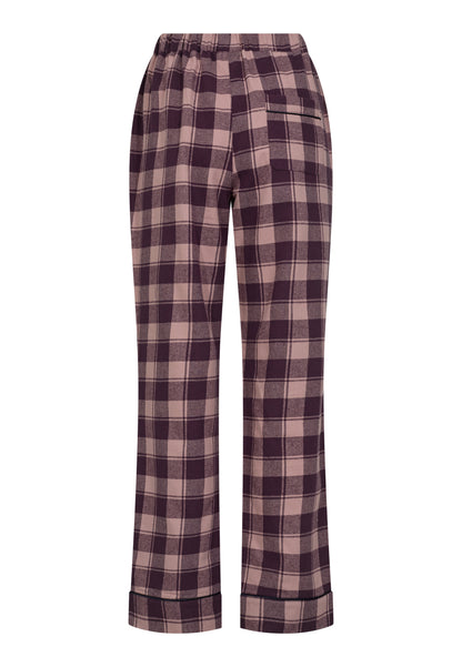 Bløde og lækre flonel natbukser fra JBS med bordeaux og rosa tern. Natbukserne har et bredt opsmøg ved benene og bindebånd i livet. Der er skrålommer i siderne og en lille lomme bagpå. Perfekt til en afslappet hyggedag derhjemme.