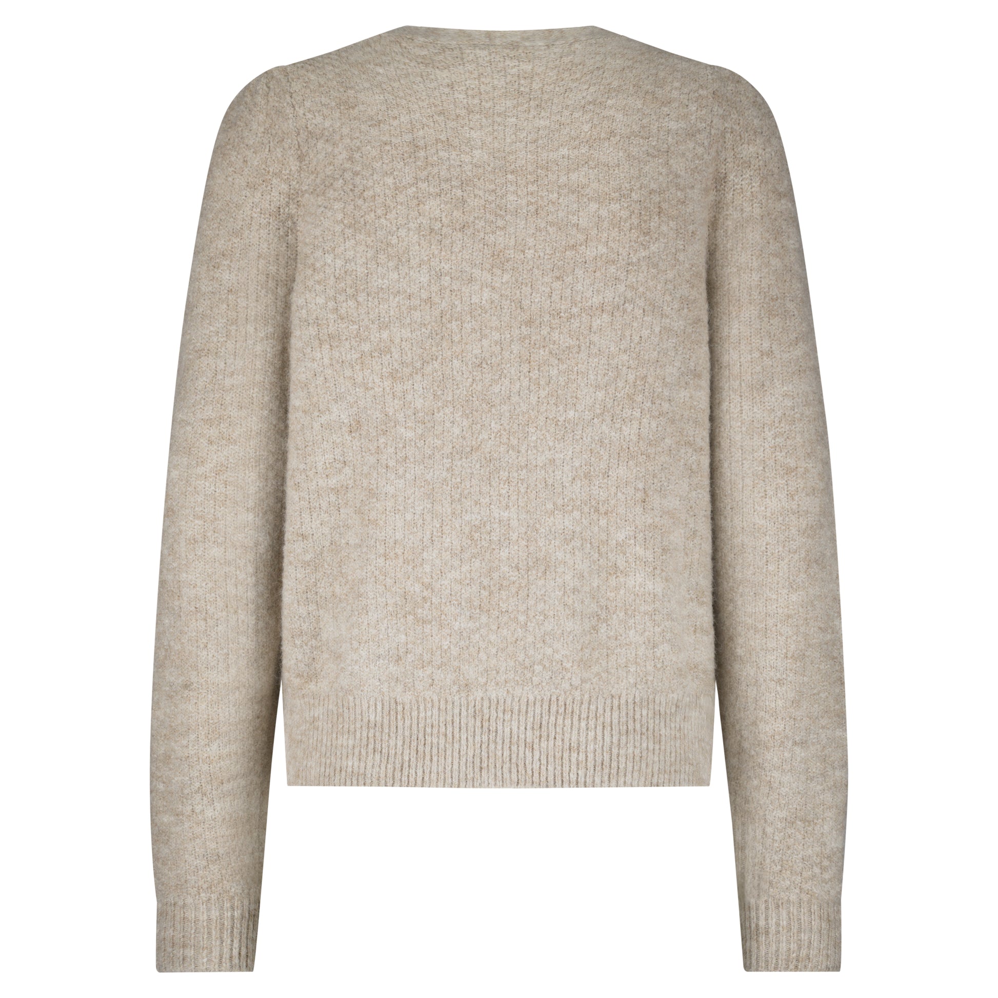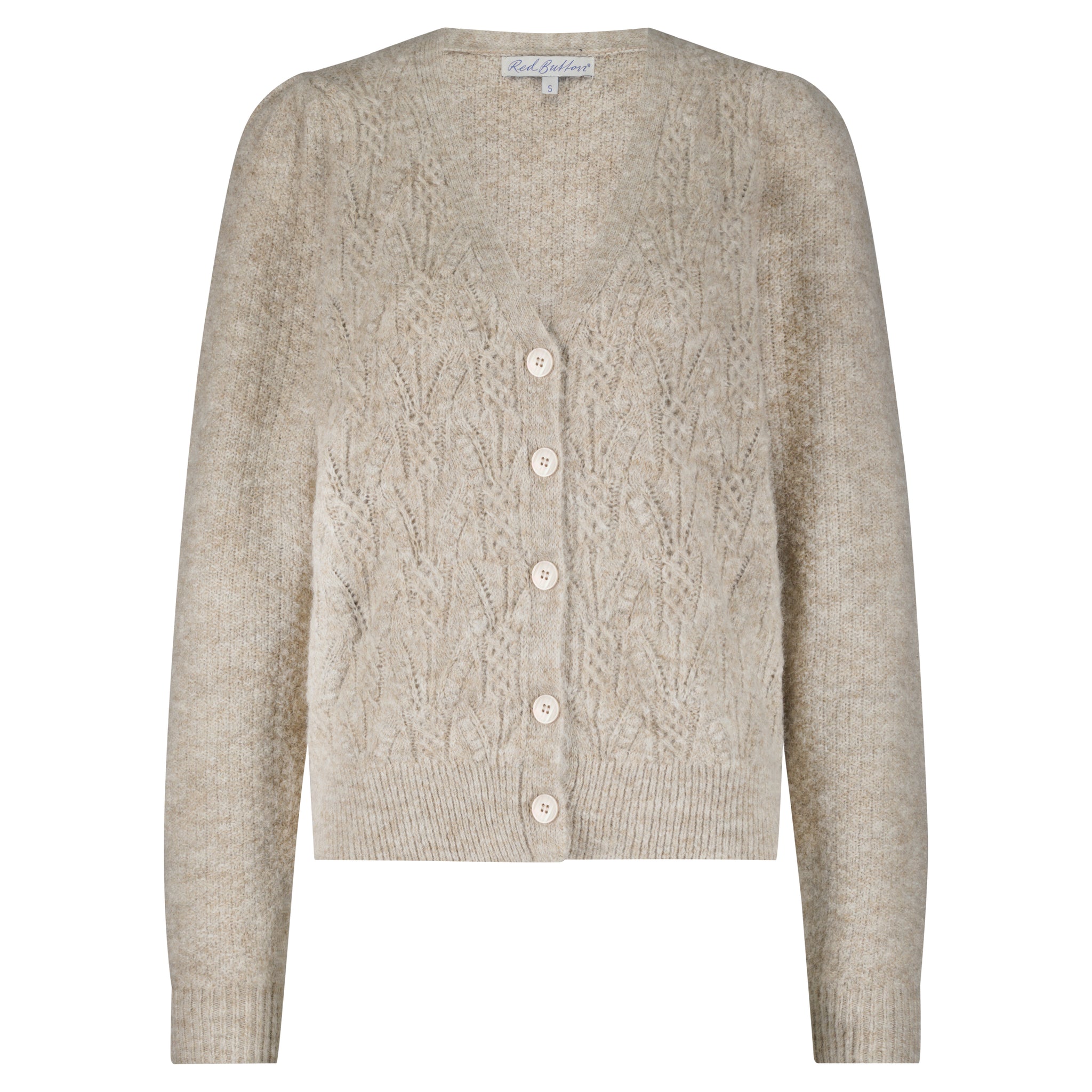 Feminin cardigan fra Red Button i en lækker sandfarve. Cardiganen er fintstrikket med et sødt hulmønster. Den er super fin til dine brune bukser, hvis du gerne vil fremhæve de varme efterårstoner i dit outfit.