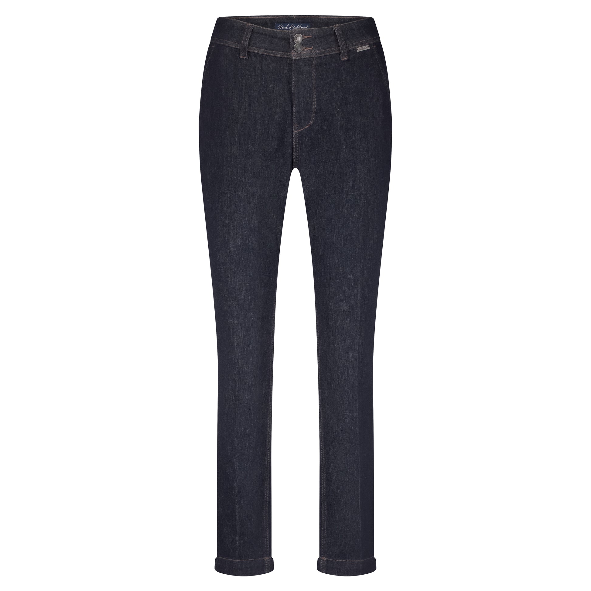 Fede jeans fra Red Button i mørkeblå denim. Diana buksen har smalle ben, der er afsluttet med et opsmøg. Style med chunky strik eller en cool vest.OBS - flere vælger at gå en størrelse ned, da buksen giver sig i brug.