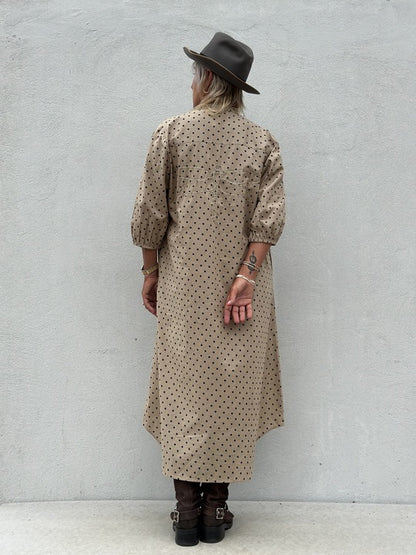 Prikket kjole fra Gaspar med lommer i siderne. Kjolen har et løst snit og er super fin med et par støvler til. Style med en strik på kolde dage.