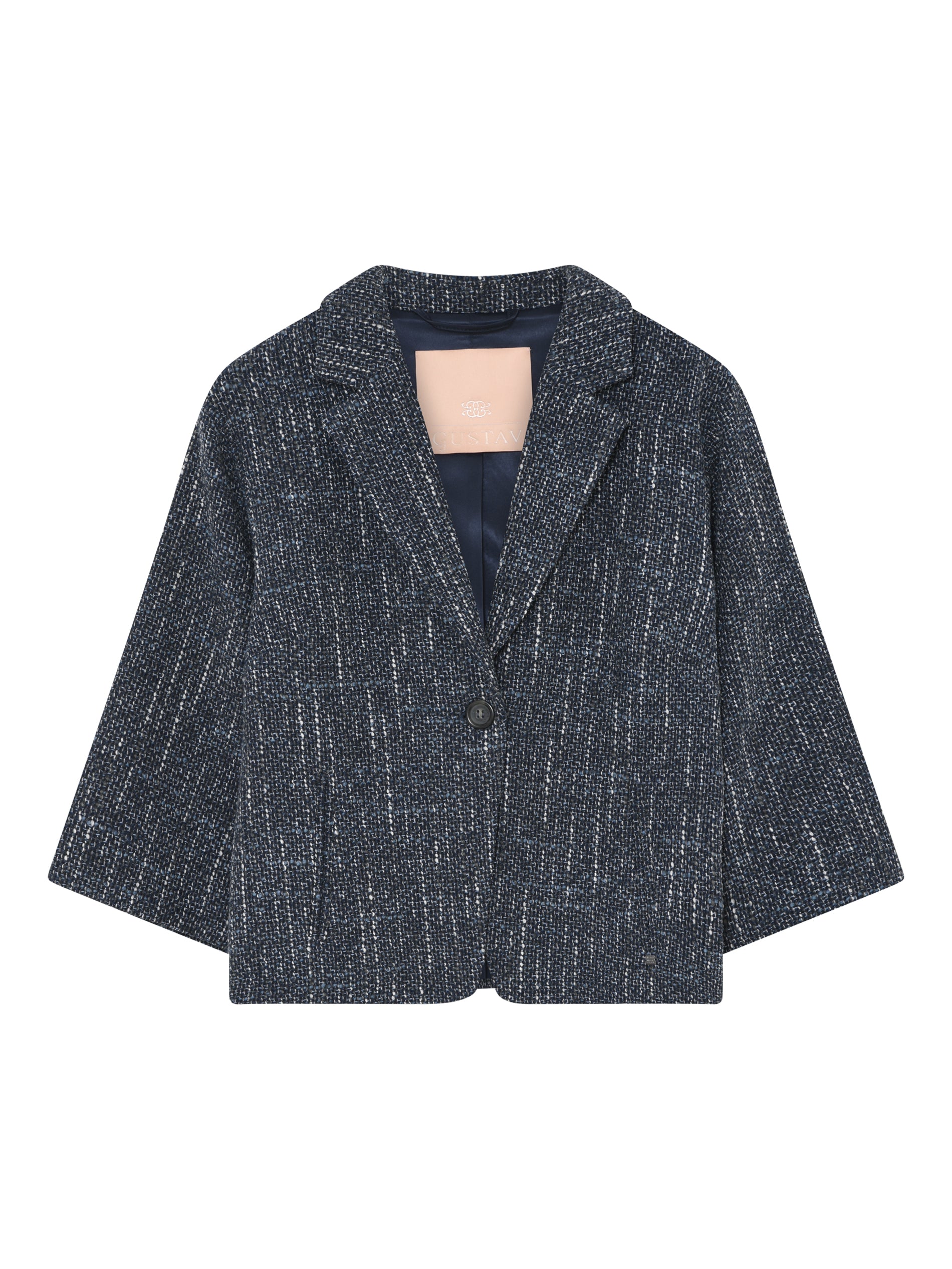 Fed blazer fra Gustav i blå bouclé. Jakken har 3/4 ærmer med god vidde. Du lukker blazeren med en enkelt knap, men du kan også fint bruge den, hvor den står åben. Style med en af de lette viskosebluser i det tidlige efterår og brug den derefter over dine strikbluser. Den fede bouclé jakke er super cool til efteråret. Du finder den også i en fin creme farve, hvis den blå bliver for mørk.