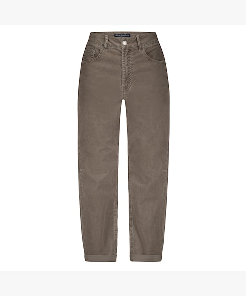 Skøn fløjlsbuks fra Red Button i den gode barrel facon, der buer let ved lårene. Buksen er højtaljet og lækker at have på. Style med off white bluser og fremhæv den varme farve i bukserne.