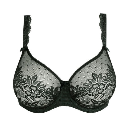 Elegant blondebh fra PrimaDonna i en lækker, mørkegrøn farve. Madison er en fuldskål bh uden vattering i skålene. Bøjlerne sørger for at barmen bliver centreret, så du får en flot facon. Den bløde foring på bøjlerne er med til at øge komforten, så du ikke har noget, der snærer. De smukke blonder giver Madison et eksklusivt look. Kombiner med en af de fine trusser i samme serie, hvis du godt kunne tænke dig et helt sæt.