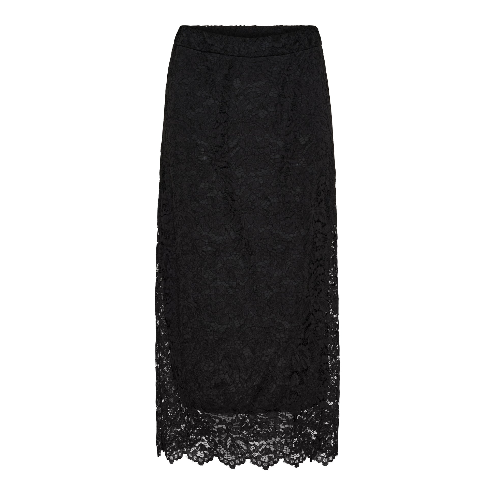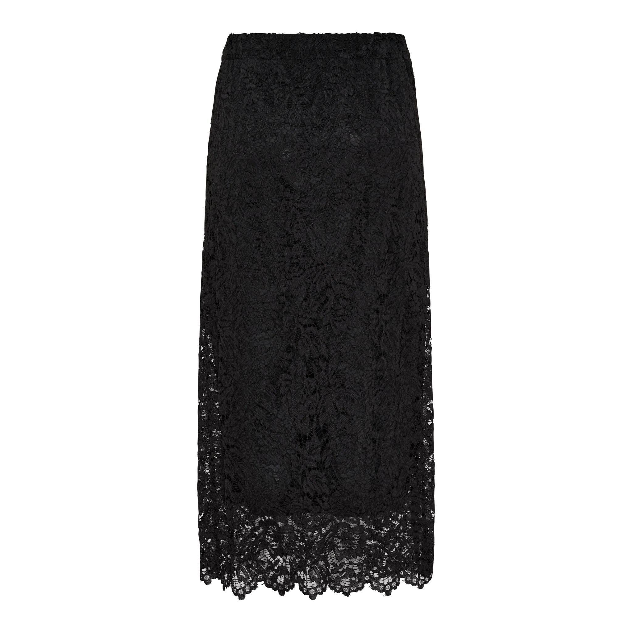 Fin blondenederdel fra Marta du Château i sort. Nederdelen har elastik i taljen og en lige pasform.