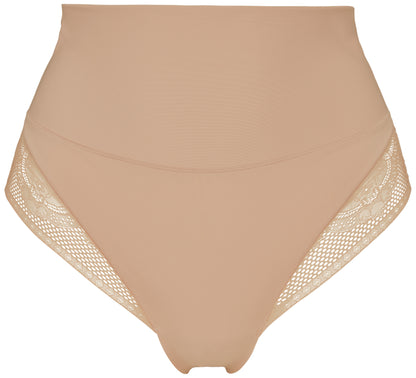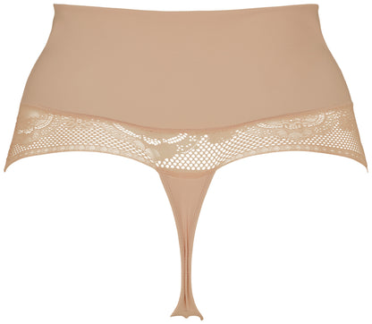 Lækker 3-pak fra Missya i sort, nude og off white. Den fine string trusse har fået en høj kant, så den dækker maven. Der er også lidt shape i materialet, som er med til at give lidt ekstra hold, og kan være rart, hvis du har en tætsiddende kjole på.OBS: Trusserne kan være svære at få over hofterne, men når de kommer på, er de størrelsessvarende. De kan dog virke små, når du tager dem på - det oplever man ofte med trusser, hvor der er shape i materialet.
