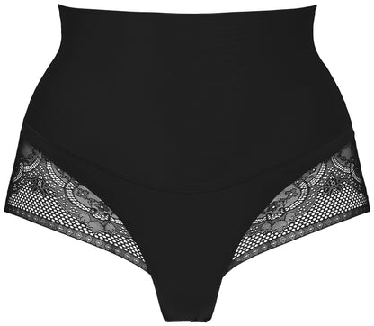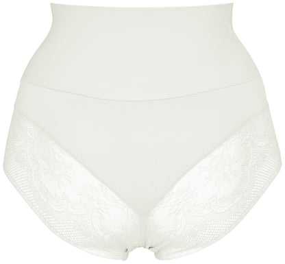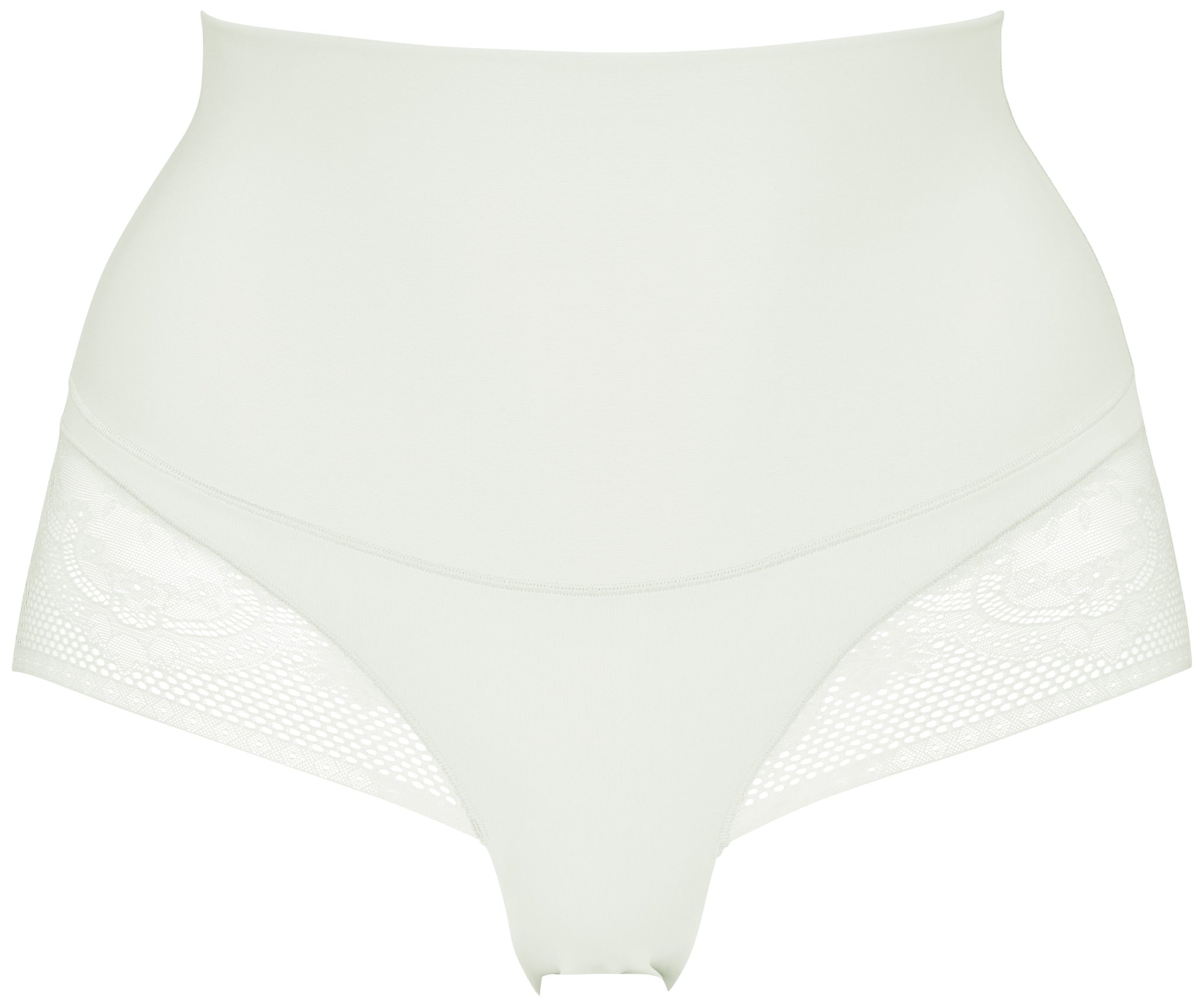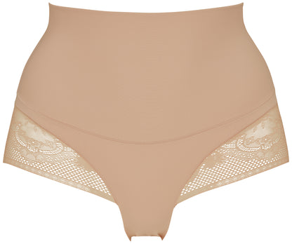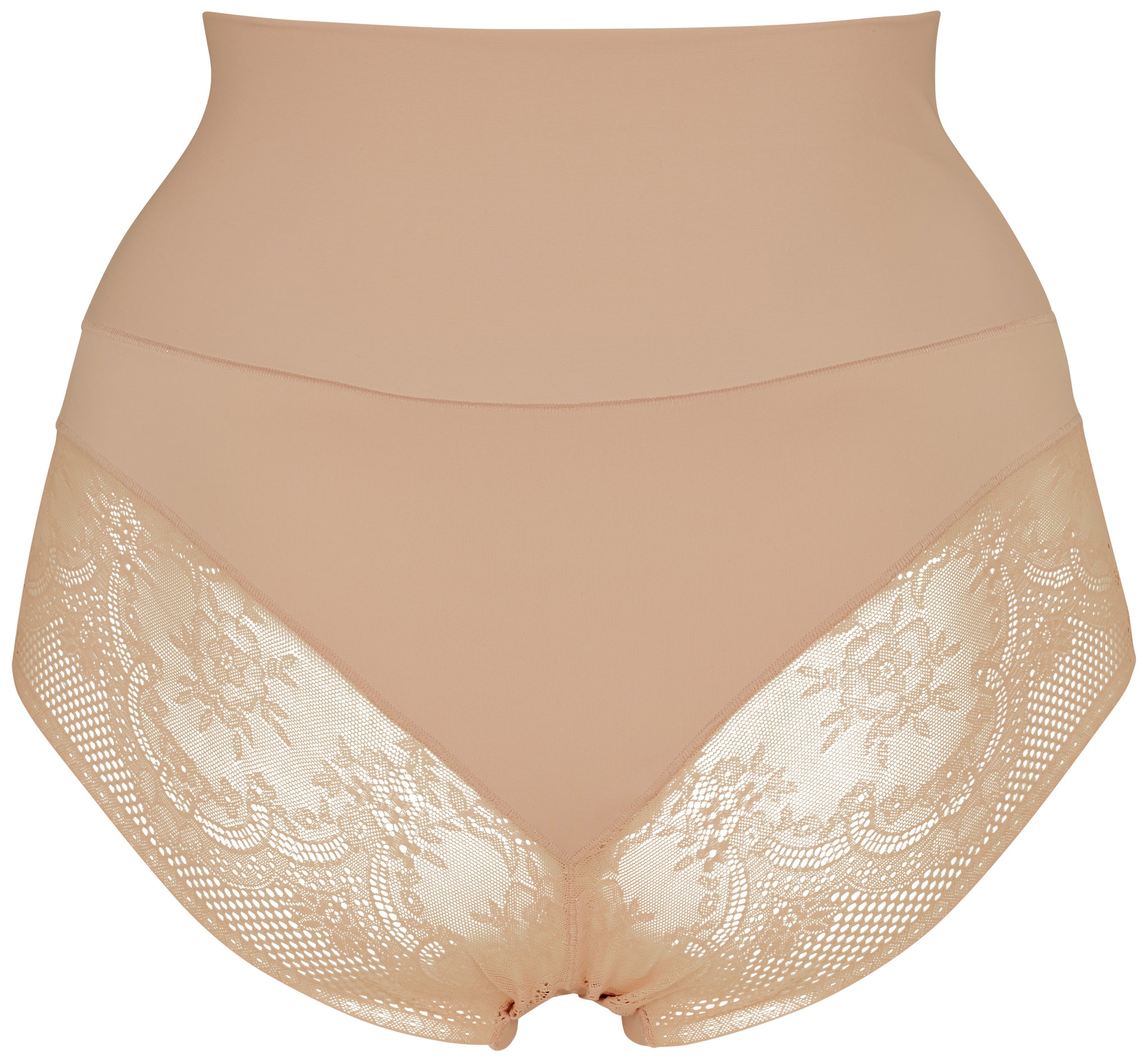 De gode 3-pak trusser fra Missya er kommet i et design, der har lidt shape i sig. Det betyder, at trussen er med til at holde lidt ind ved maven. Den fine lace bagpå og på siderne sikrer det feminine touch. I denne 3-pak får du en trusse i off white, nude og sort.OBS: Trusserne kan være svære at få over hofterne, men når de kommer på, er de størrelsessvarende. De kan dog virke små, når du tager dem på - det oplever man ofte med trusser, hvor der er shape i materialet.