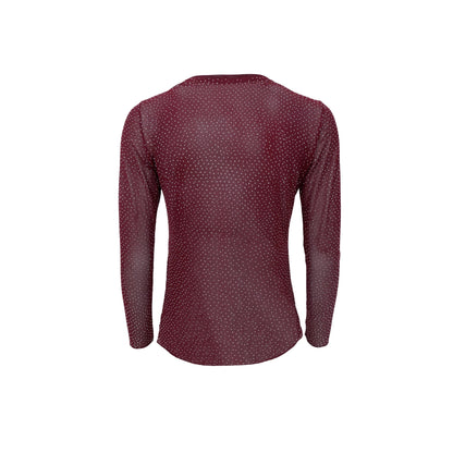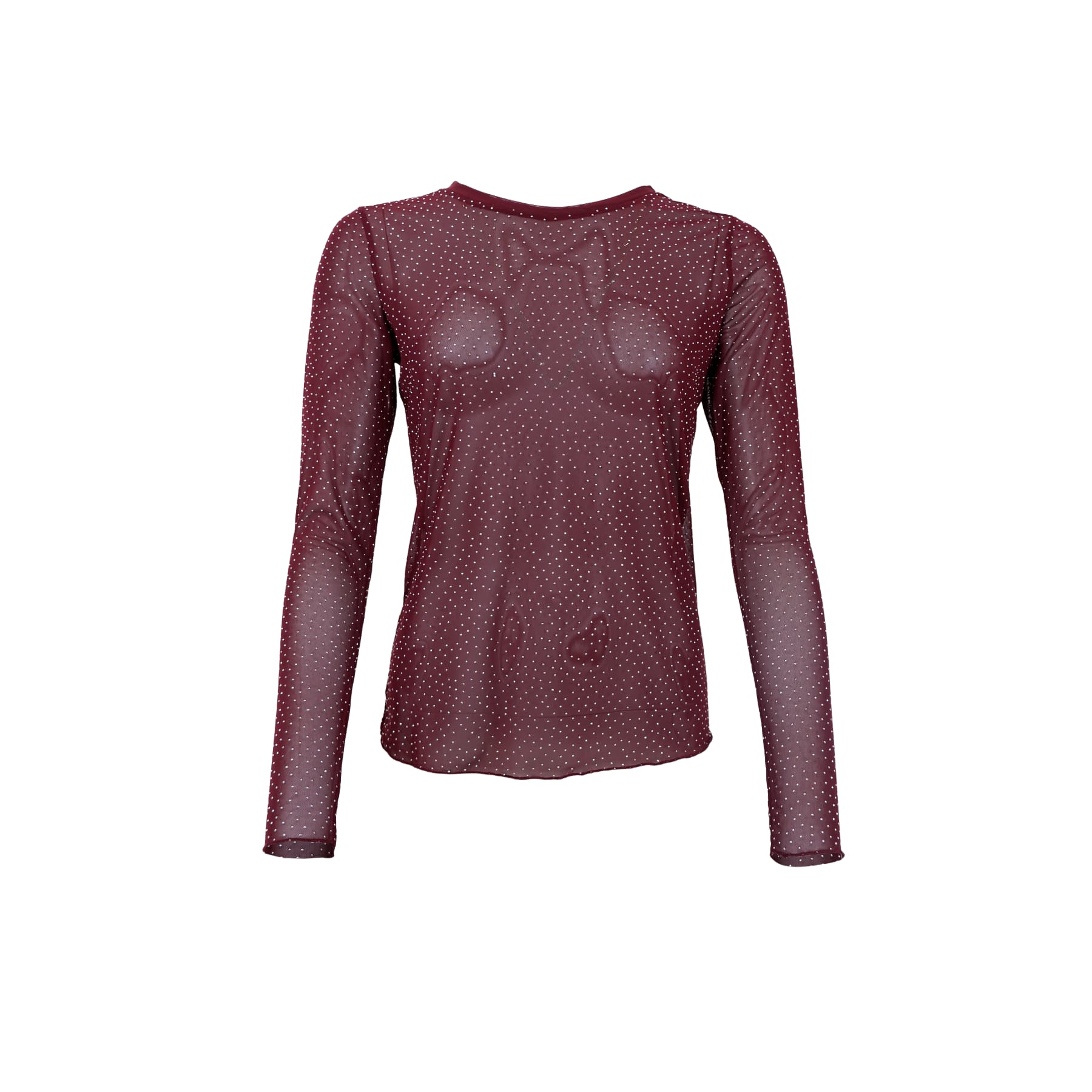 Skøn mesh bluse fra Black Colour i en flot, mørkelilla farve. De små prikker bryder det lilla på flot vis. Style under din blazer eller brug mesh blusen under dine strik kapper.