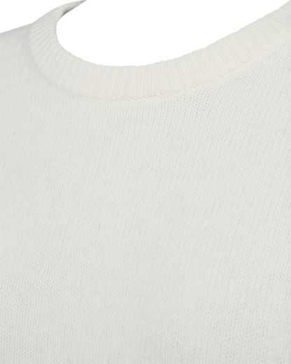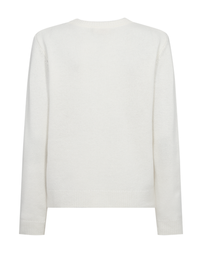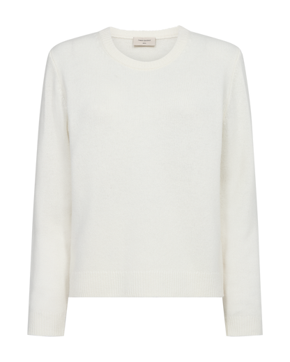 Helt enkel strikbluse fra Freequent i off white. Blusen har rund halsudskæring og et lige snit. Super fin bare til et par sorte bukser.
