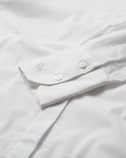 Flot, hvid skjorte med store ærmer. Skjorten har høje manchetter, så dit look bliver stramt. Perfekt til efteråret med suit pants eller en pencil skirt.