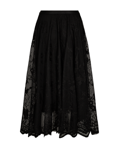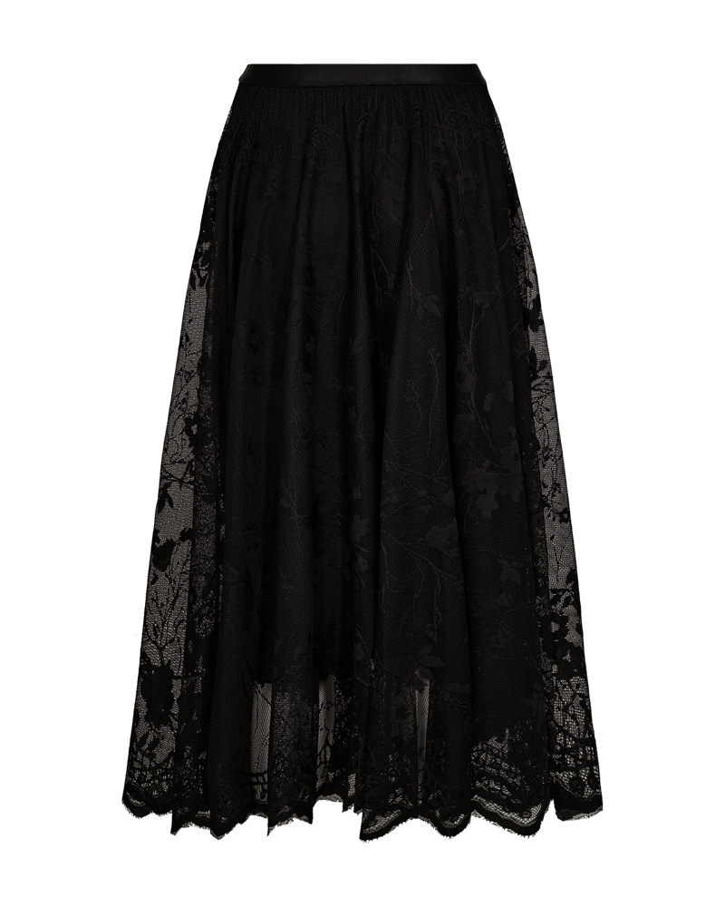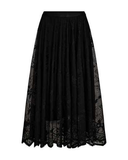 Lally er en super flot nederdel fra Freequent. Den har et transparent look med flot blomstermotiv og er rundskåret, så du får den god vidde. Nederdelen har elastik i taljen for ekstra komfort og et underskørt i næsten hele længden. En super flot nederdel, du både kan style til fest med en flot top, eller til hverdag med en hvid skjorte eller en strikbluse.