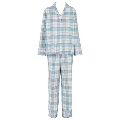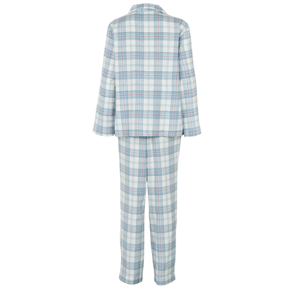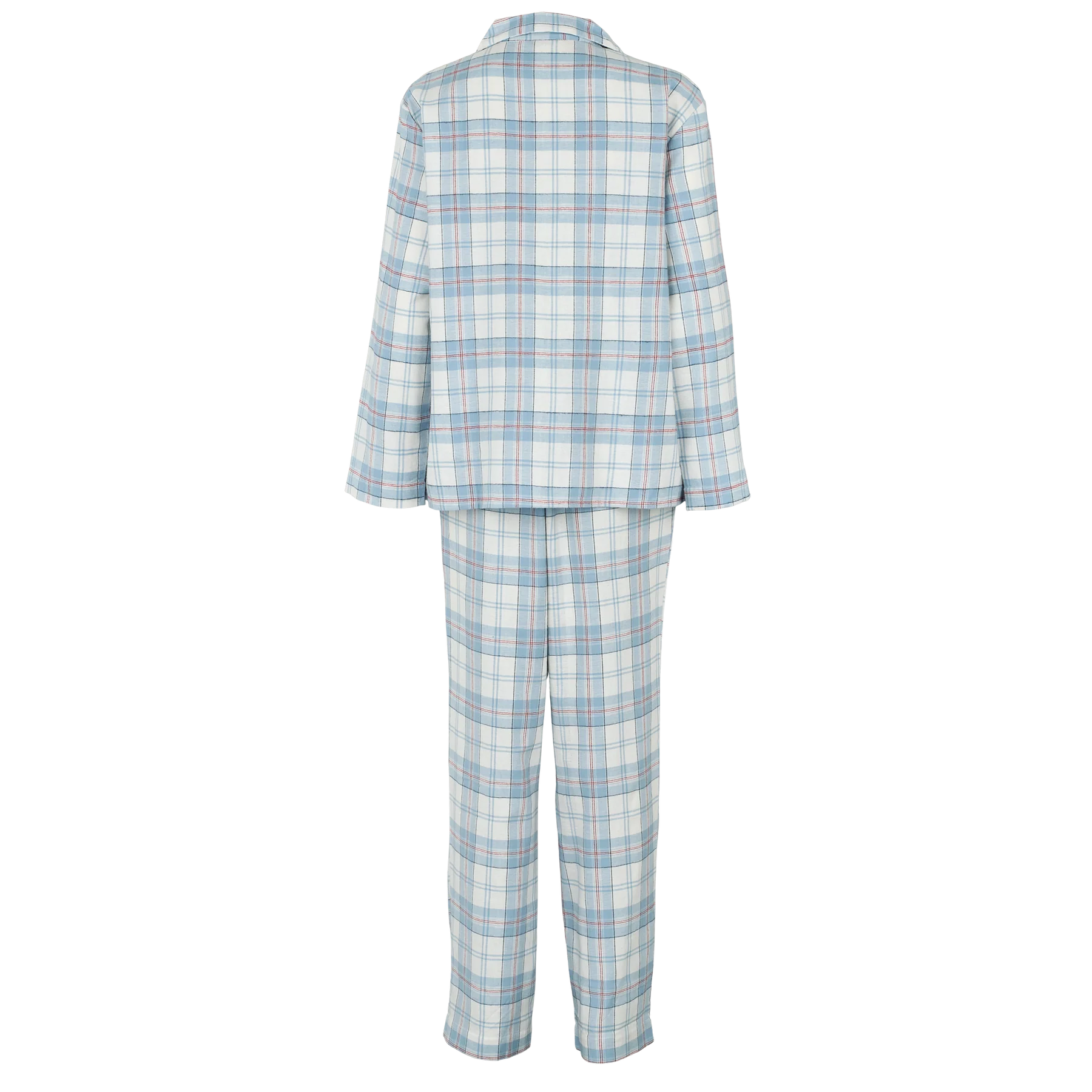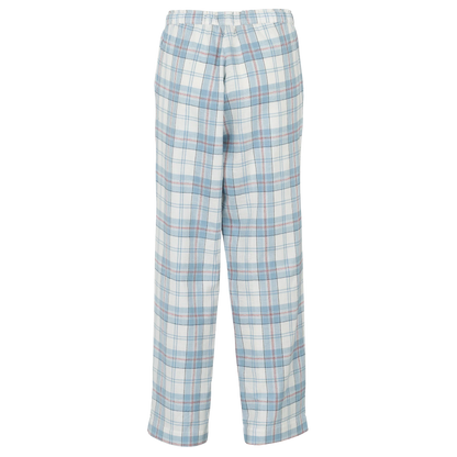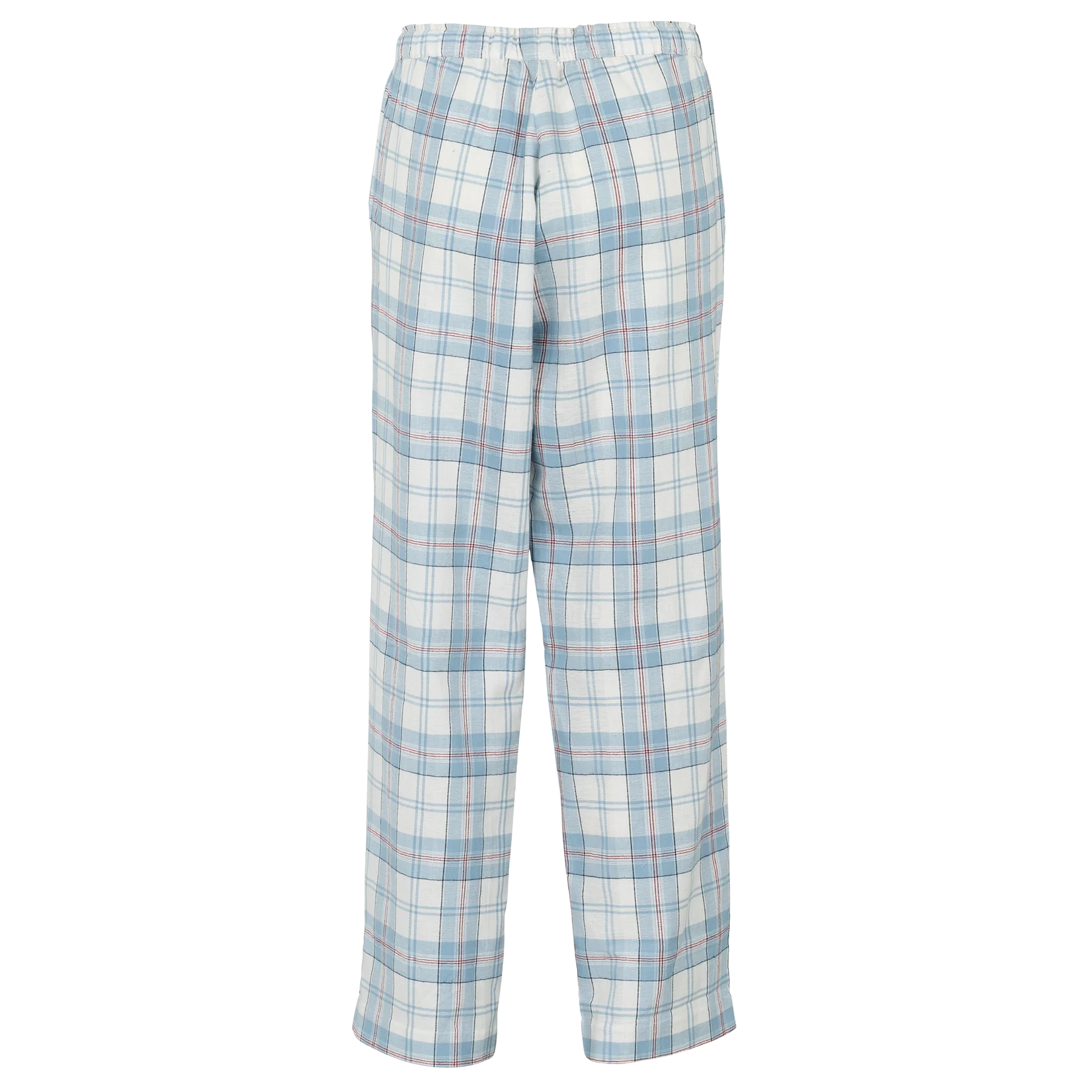 Leder du efter en blød flonel pyjamas til vintersæsonen? Den ternede pyjamas fra Missya er en af vores bestsellere. Den er blød og lækker at have på - oplagt til hyggestunderne derhjemme eller i sommerhuset. Den lyseblå farve er lys og lækker. Pyjamasbukserne er lavet med elastik og bindebånd i linningen samt skrålommer i siderne.