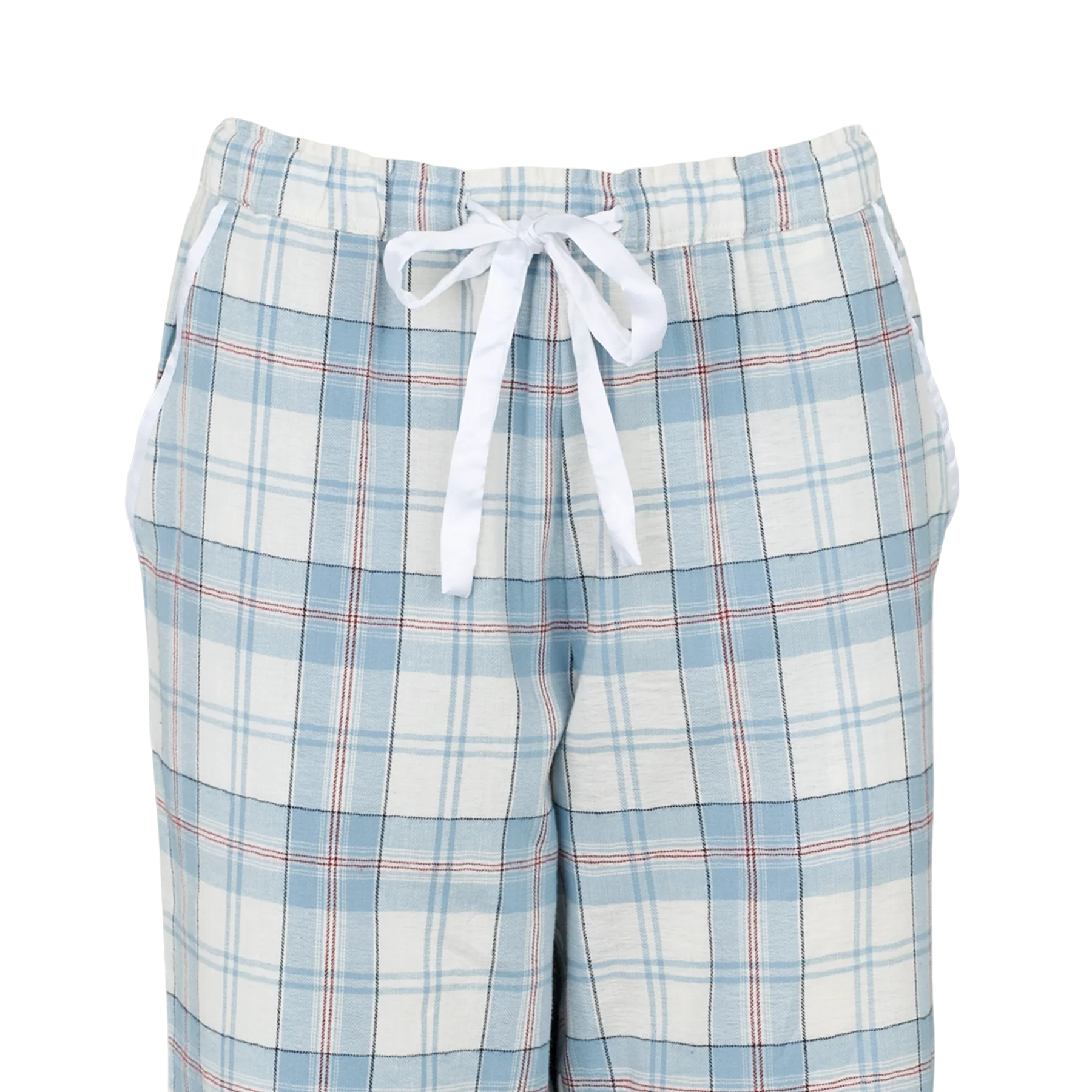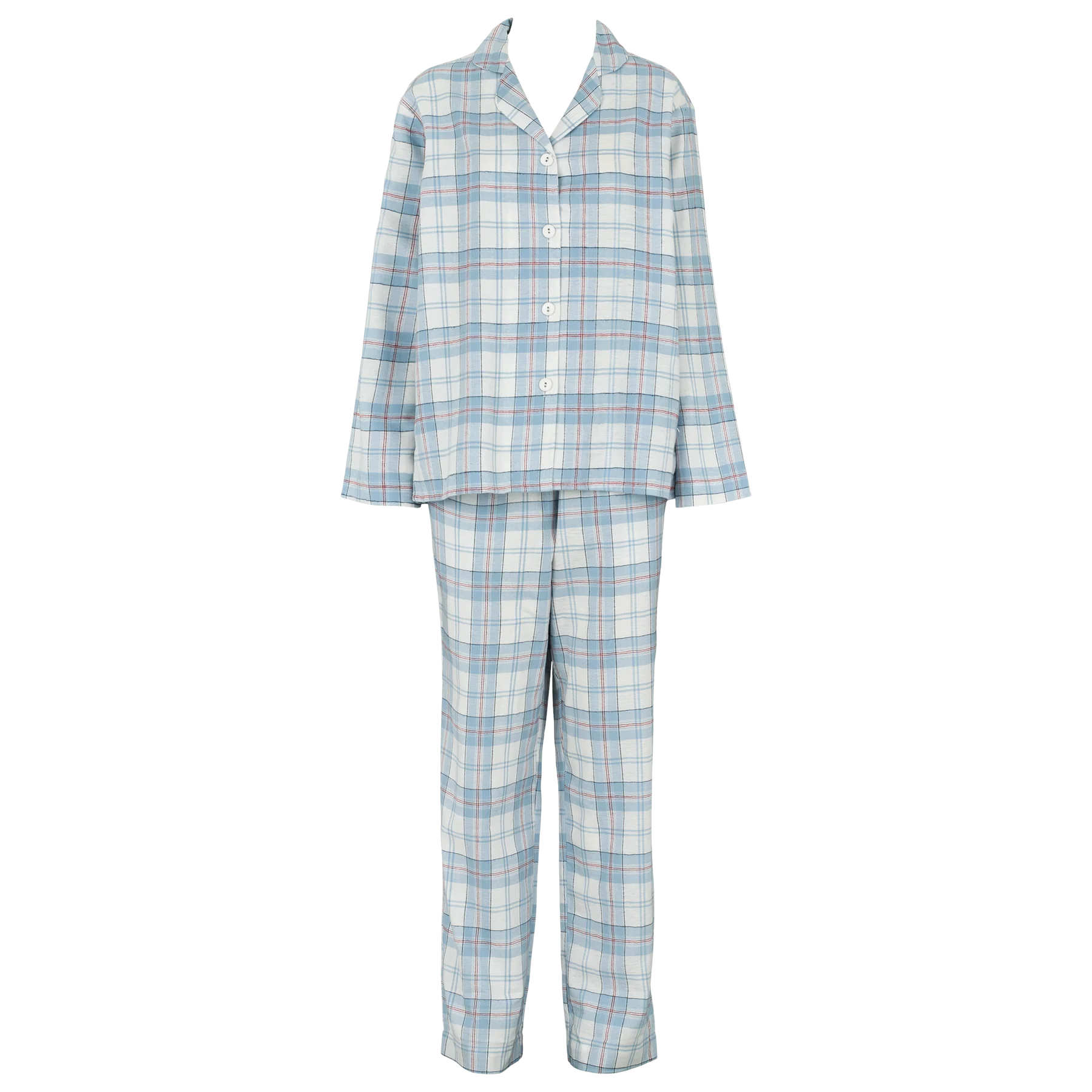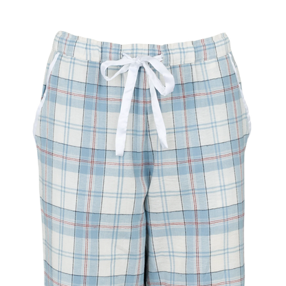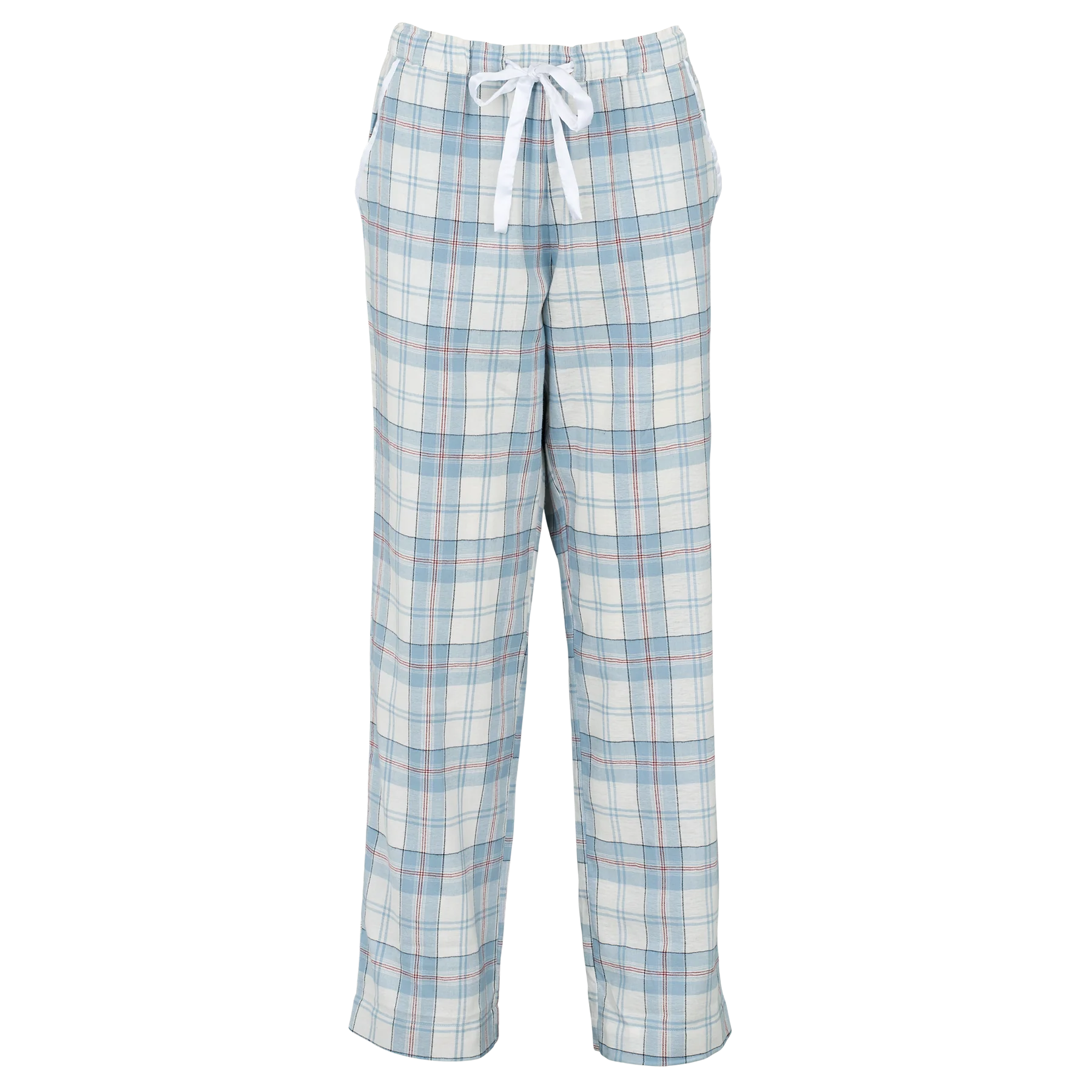 Leder du efter en blød flonel pyjamas til vintersæsonen? Den ternede pyjamas fra Missya er en af vores bestsellere. Den er blød og lækker at have på - oplagt til hyggestunderne derhjemme eller i sommerhuset. Den lyseblå farve er lys og lækker. Pyjamasbukserne er lavet med elastik og bindebånd i linningen samt skrålommer i siderne.