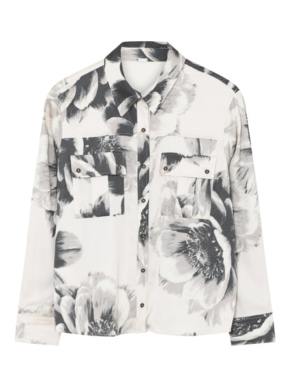 Flot Gustav skjorte i lækkert vinter print. Skjorten er lavet i kraftig viskose og har fine lommer foran. Style til de matchende Bao bukser, hvis du gerne vil have et helt sæt, der passer sammen. Du kan også fint sætte Ilona blusen til camel farvede bukser, som du ser på billedet, hvis du gerne vil have et mere varmt look.