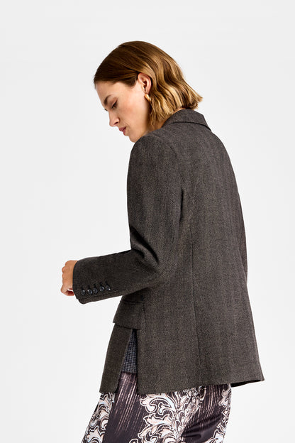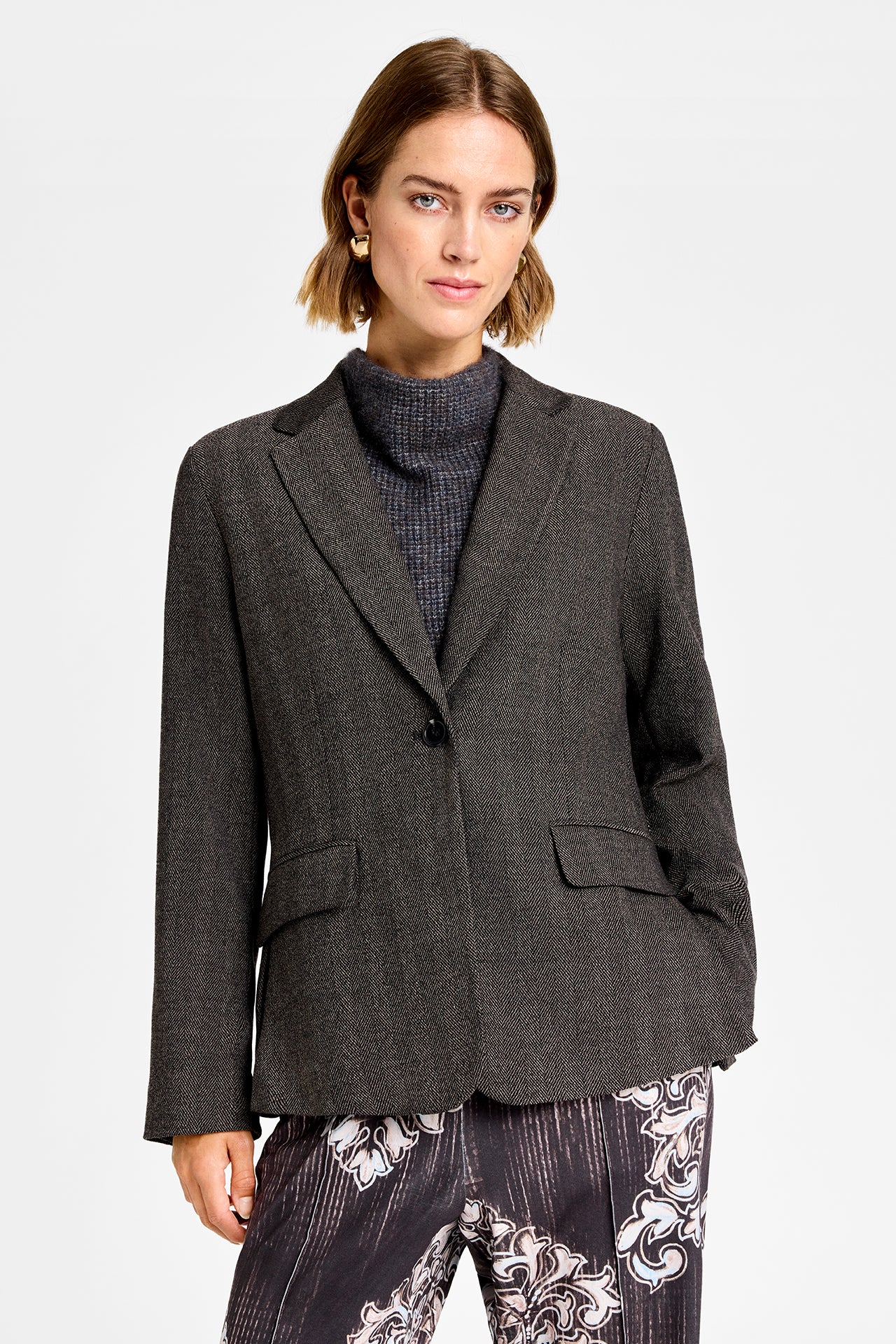 Flot og elegant Gustav blazer. Farven er en lækker brun. Der er slidser i siden og snydelomme foran. Style til de printede Marisa bukser, hvis du gerne vil have samme outfit, som på modellen.