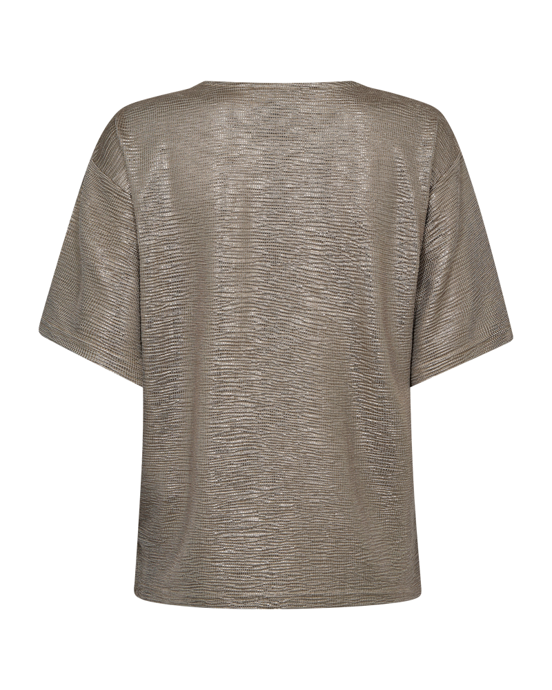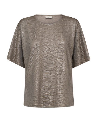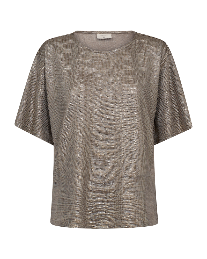 Fin glimmerbluse fra Freequent. Den gyldne bluse er perfekt, hvis du gerne vil have lidt ekstra shimmer på dit outfit. Style til sorte bukser eller en fin nederdel.
