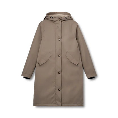 Lækker vinterjakke fra Kopenhaken i en enkel, lysebrun farve. Jakken har udvendige lommer og en god, foret hætte, der sikrer at du kan holde varmen. Den ekstra manchet ved ærmerne lukker vinden uden. Den gode vinterjakke kan både tåle vind og fugt, så du roligt kan bruge den hele vinteren.Størrelsesguide:Str. 36: Brystvidde: 106 cm, Længde: 105 cmStr. 38: Brystvidde: 110 cm, Længde: 107 cmStr. 40: Brystvidde: 115 cm, Længde: 109 cmStr. 42: Brystvidde: 120 cm, Længde: 111 cmStr. 44: Brystvidde: 125 cm, Længde: 113 cm