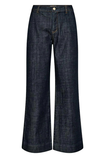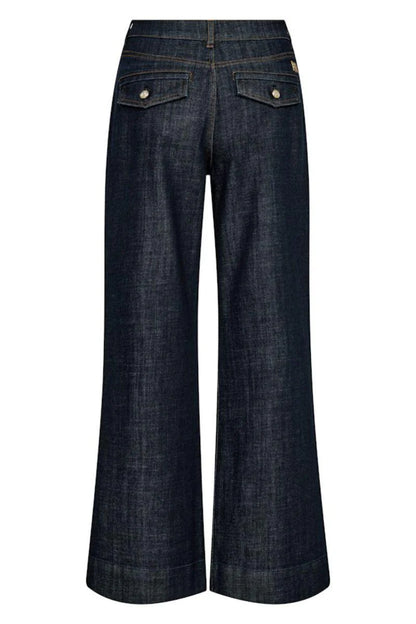 Cool mørkeblå jeans fra Mos Mosh med god vidde i benene. Det brede opslag på buksebenene giver dit et fedt 70'er look. De lækre jeans har lommer bagpå med knap og skårlommer i siderne. Style med den matchende blazer, hvis du gerne vil have et helt sæt.