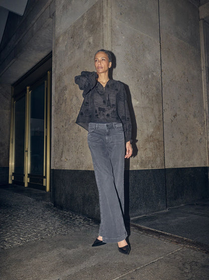 Er du også vild med de højtaljede jeans fra Mos Mosh? Her får du et par lækre, grå jeans med brede ben og et slidt look. De flotte kontraststyninger giver et råt udryk, der passer perfekt ind i Mos Mosh stilen. Style med en hvid skjorte og sort blazer, hvis du vil fremhæve den grå farve på dine nye jeans.