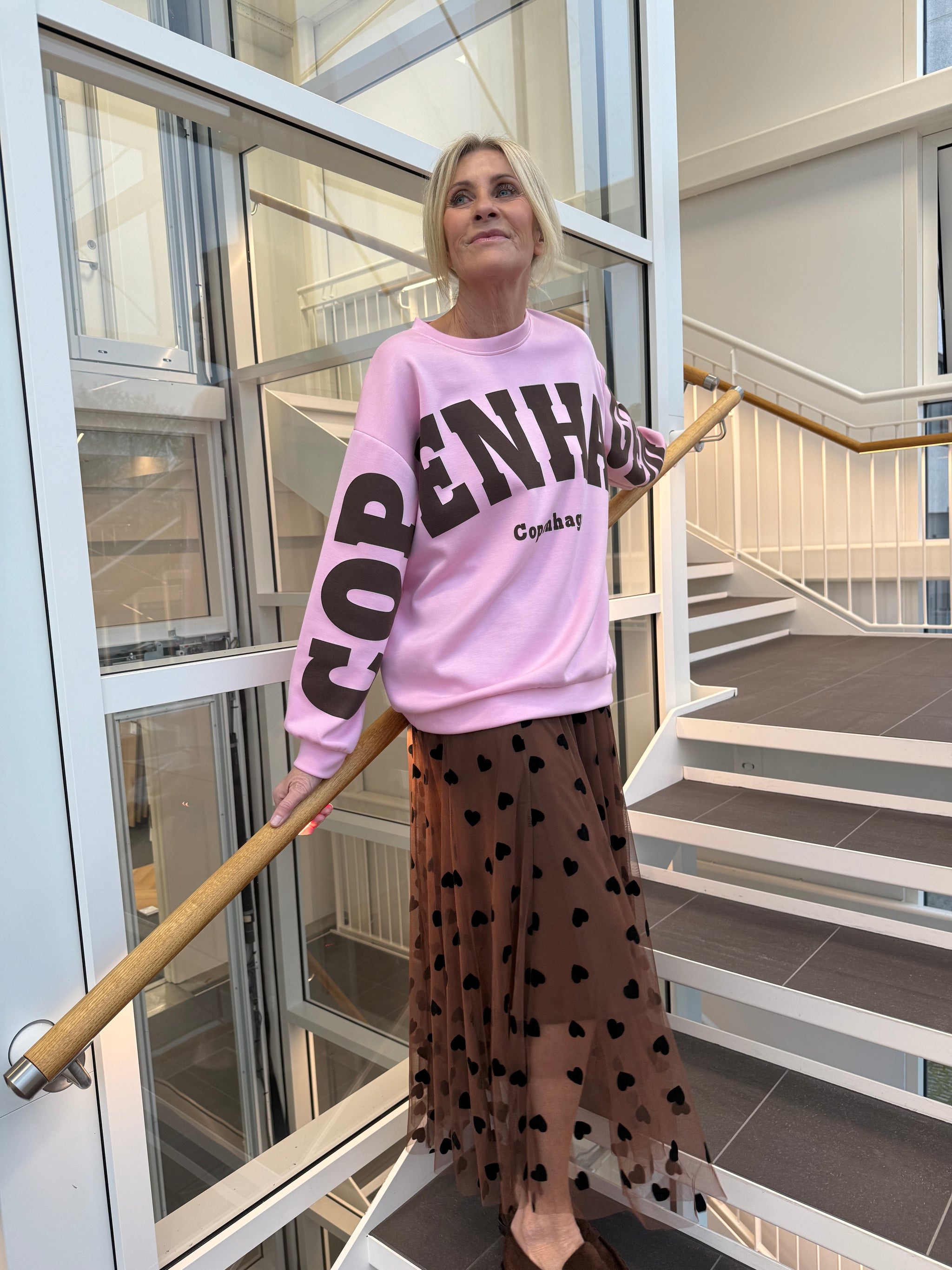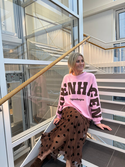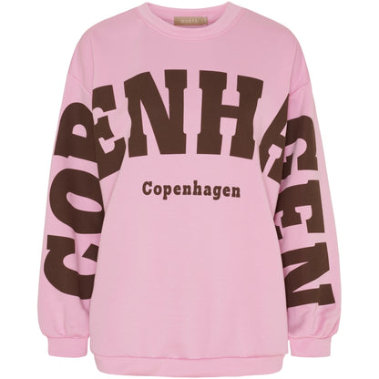 Lækker sweatshirt fra Marta du Château i pink med brun skrift. Style med en brun nederdel, som du ser på modelbilledet og fremhæv de varme toner i dit outfit.Mål:S/MChest: 126 cm.Length: 71 cm.