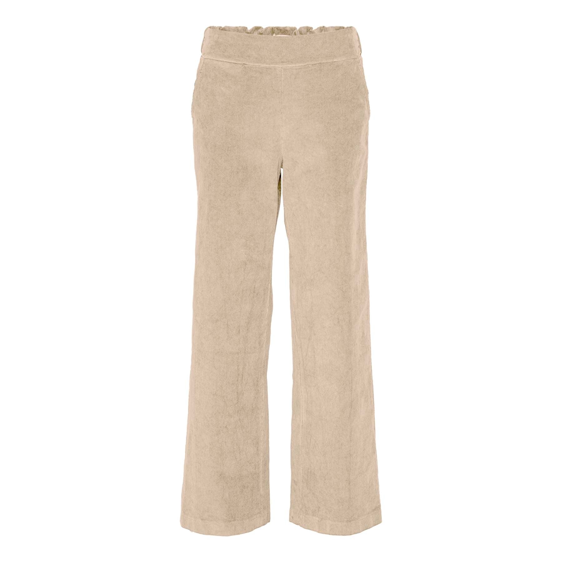 Skønne pudderfarvede fløjlsbukser fra Amaze Cph. Bukserne er bløde og lækre at have på med behagelig elastik i linningen og skrålommer i siderne. Style med en mørkebrun strik, hvis du gerne vil have et mere varmt look.