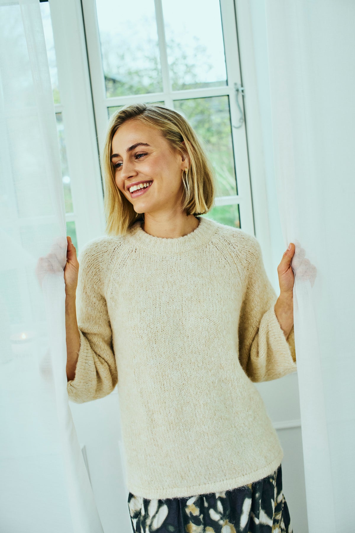 Lækker strikbluse fra Freequent med let trompet effekt ved ærmerne. En super fin strik til dine brune fløjlsbukser eller dine jeans.